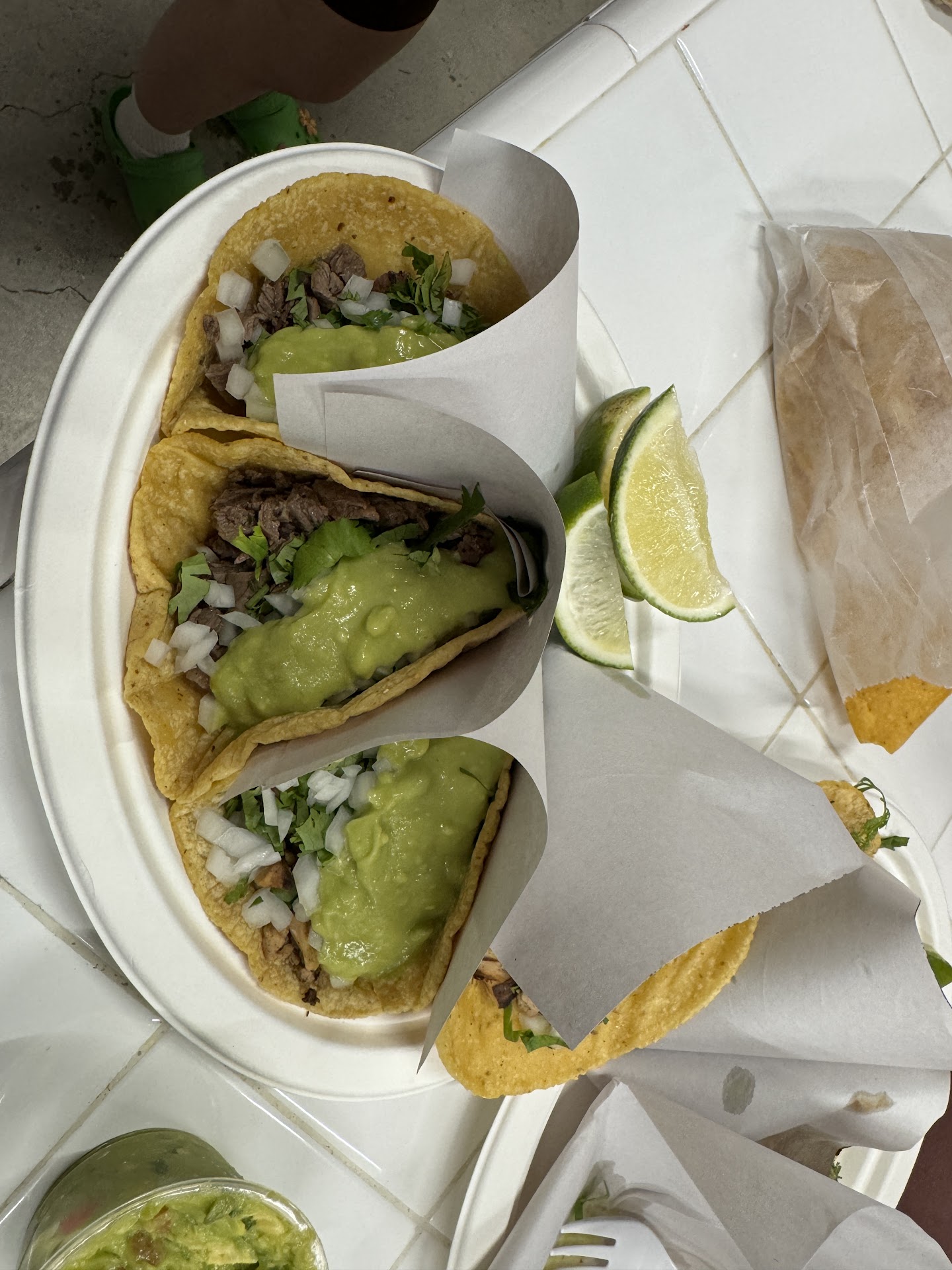 The corn tortillas were decent. Lines move fast. Guac is not extra (finally something authentic). Plenty of salsa and lemon to go around. Aguas Frescas are decent.