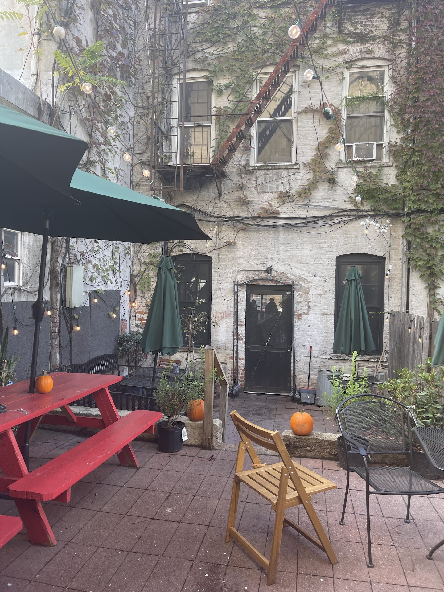 Good neighborhood bar. Bartenders were friendly and efficient although granted we were 2 of 9 people in the place on a Friday night. Draft list had a few worthwhile things (Weinhenstephaner, Pumpking) which is more or less a prerequisite in this area of Brooklyn, but as someone who lives in an area where this isn't the norm, I appreciated it. It's not dirty per se, but not really clean either; sort of dingy looking overall especially with the dim lighting. Other patrons were also friendly as well. Biggest attraction here is the large outdoor patio. This place is a good place to grab a drink in the no-man's-land known as Gowanus but...
