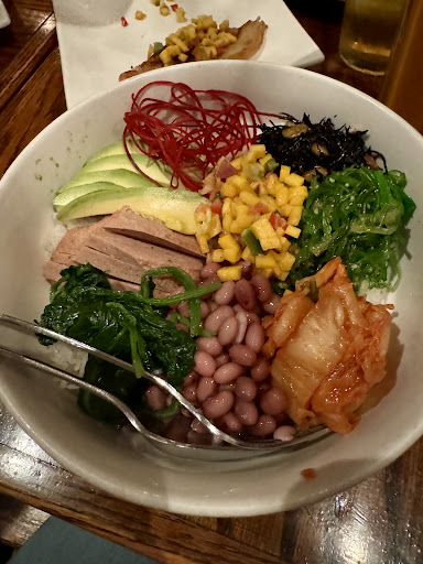 Read moreCivilization starts halfway down Mulberry Street, and continues around the corner on Broome, with this cozy, casual oasis. You'll want to turn down your mobile phone's brightness for the comfortable elegance here. There's bamboo lanterns and glass bowl lamps, framed photos and objets d'art. Lavender sprigs garnish each table, and free jazz was playing on the speakers when I was there, with long languid saxophone solos complementing the meal so well. The menu is vegan Asian fusion. I had the basil-ginger tofu. The tofu appeared like grilled chicken, with red and green peppers, asparagus and grilled zucchini; the rice was a fine pilaf of short brown rice with wild black rice mixed in. For an added kick, get some hot sauce on the side - it's a nice pure sweet chili oil. I was torn between spicing up the dish versus quieting my palette enough to let its fine ingredients speak their authentic taste range - so I ended up alternating between these two. I can't wait to come back here and explore this super menu...