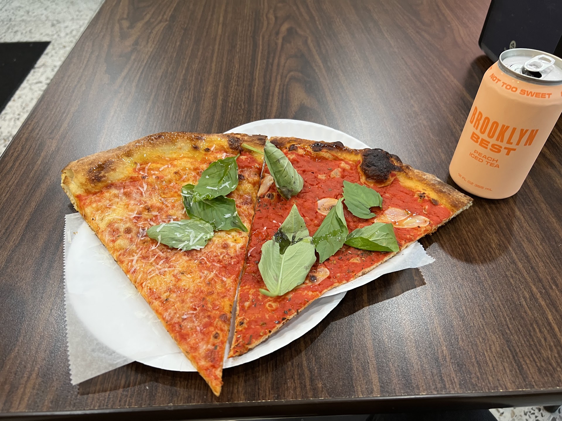 Wash it down with a can of Brooklyn Best Peach Iced Tea—“not too sweet,” like a good insult in a Bensonhurst card game—and for a moment, you’re not just fed. You’re right with the world.