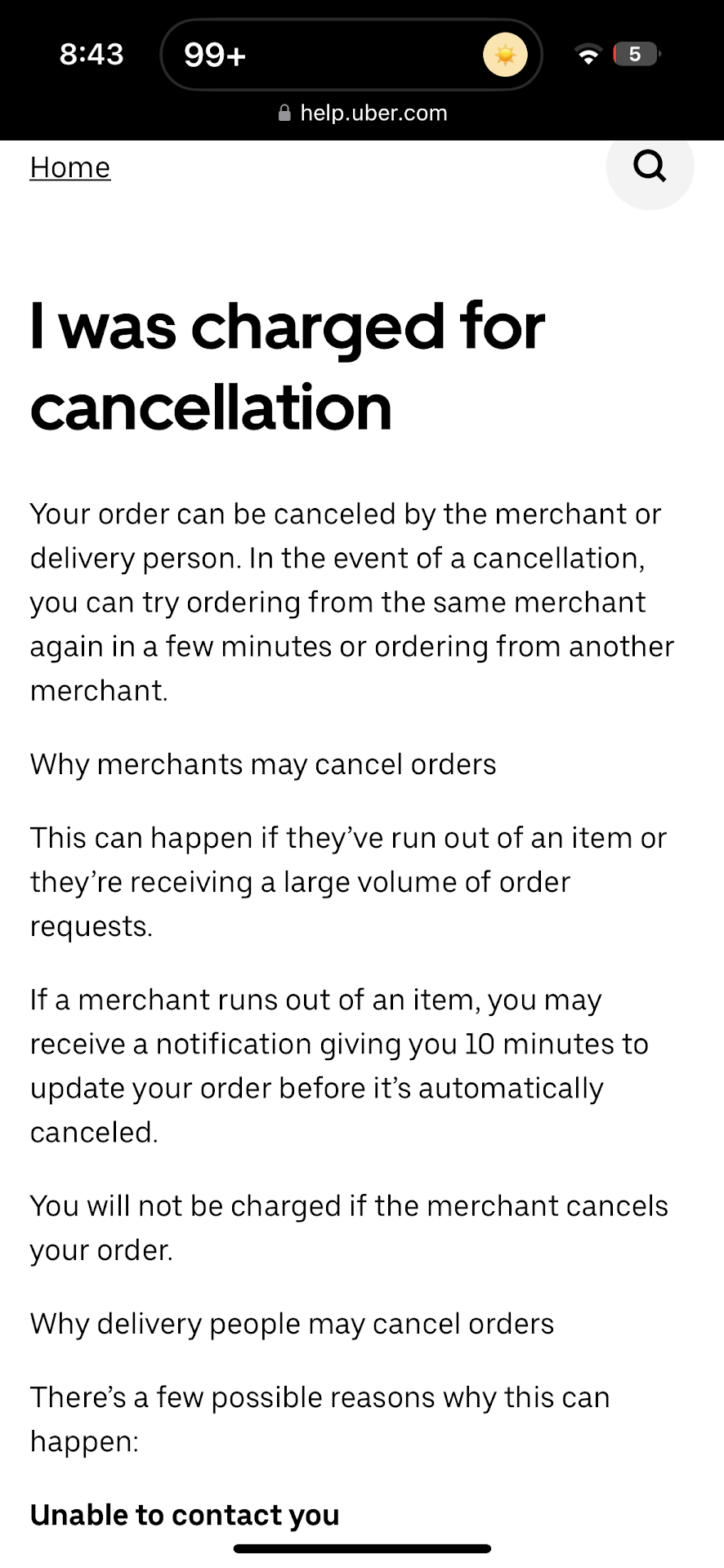 Two things I hate is greed and dishonesty. Placed an order via Uber eats, then was contacted shortly by the restaurant shortly after to inform me that one of the items I ordered was unavailable. Okay no problem, just cancel out that item or the entire order. The restaurant refused, proceeded to mark my order ready for delivery and told me I would need to contact ubereats to inform them. YOU ARE THE RESTAURANT, why am I going out of my way to contact support about an order you canât fulfill! The worker continued to gaslight me saying they donât have the capability of canceling out orders which is a BOLD FACE LIE. Any time a restaurant is unable to fulfill they have the capability of reporting that through the app/tablet/pos system. They refused to contact support and left it to me to handle. I took time off of my JOB to do theirs and of course uber eats customer service is incompetent and told me there is nothing they can do itâs the restaurant responsibility to report and notify them. The worker must have thought he was speaking to an idiot because I know they have the capability of canceling an order however they didnât want to be charged or have adverse action on their account so thatâs why they wanted me the customer to cancel so they can keep the profit. I hope $20 was worth it. I will NEVER in my life order from here again. I told every driver that kept being assigned to my order to not pick it up and eventually the order cancelled out by the system. Uber FAQ clearly shows restaurants can cancel an order. Letâs use our common sense here people, you telling me if you are unable to fulfill an order you canât cancel? So what will the driver pick up an empty plastic...