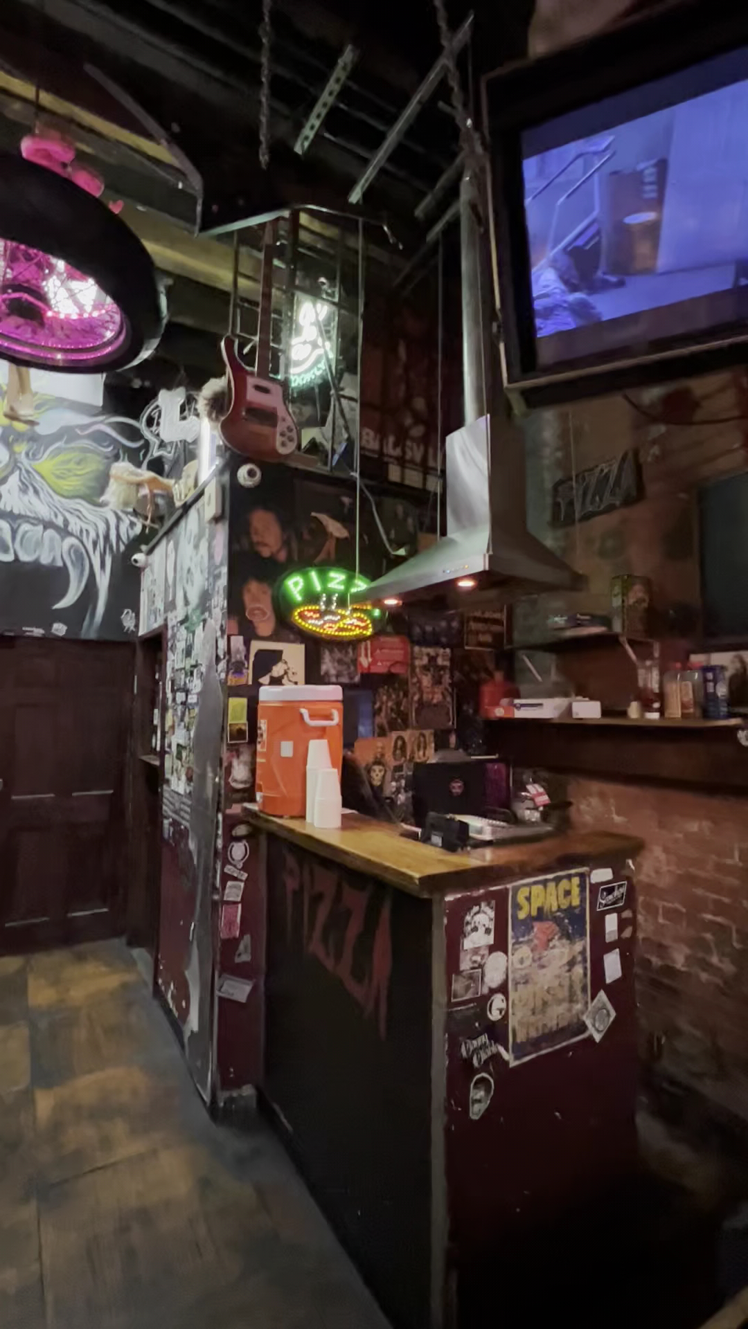 Went here after work with a friend to visit my friend who is a bartender. It wasn’t super busy from 730-8:40pm. I got a Shirley temple and the pizza. My friend got a blue marg and an amaretto sour. We both downed our drinks. Service was top tier. Great conversation. Great music. Overall a great experience! A group came with a dog toward the end of our time and the bartender gave the dog a bowl of water. I felt very safe and welcomed. The bathrooms are gendered however, they are single stall (and the vibe is use whichever feels right to you). You could spend hours looking at all the stuff they have on the walls. Please enjoy all the photos and videos I was able to take. I could write so much more but I will stop at this; I look forward to going again and trying other foods!