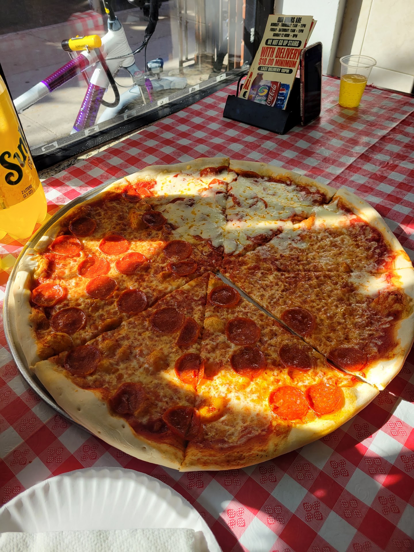 Read moreI finally get why everyone raves about New York City Pizza. The crust was crunchy and the perfect thickness, thin but not too thin. The cheese was not super greasy which I was very afraid of in trying NYC style pizza, and there was only a little red sauce, creating the perfect pizza ingredient ratio! Inside was modest, a humble pizza eatery. You are paying great prices for a great pie and nothing more, nothing less. Roberto, the main restaurant attendant was friendly and greeted me, a stressed tourist, with a smile upon my entry, making me feel like I was one of his regulars. Highly recommend this Bronx...
