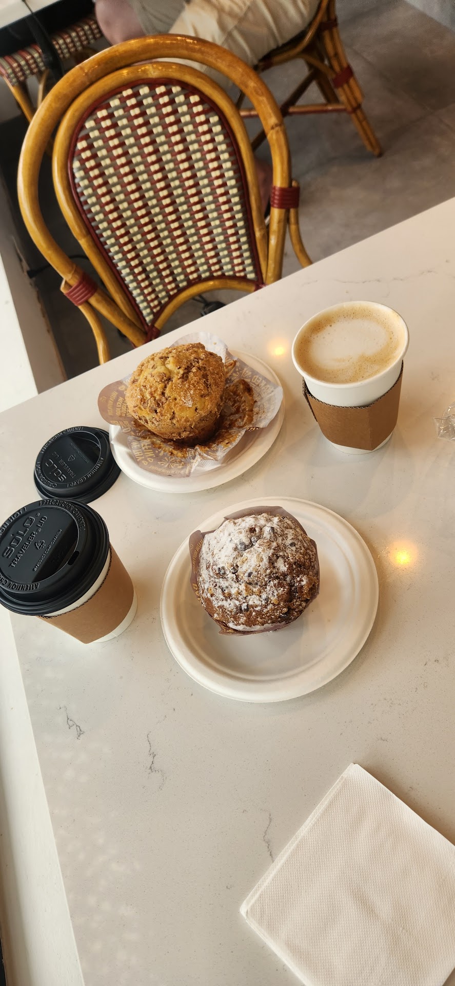 🦋sadly, that special is until 11 a.m., as the staff stated, because I came after 12. 🦋There's parking space (small lot) available &/ or street parking. 🦋 Place looks big, but quiet small inside. Inside & outside seating available. Outdoor seating looks very pleasant on a nice day. 🦋 Staff were great & accommodating. Answered all our questions. The manager made our visit very welcoming. 🦋 Coffee was good. They use El Colombia beans. I enjoyed my mocha with extra flavor. My partner enjoyed his caramel macchiato. 🦋we tried two different types of muffins. It was alright. 🦋it's a coffee & bakery place. So all the backery goods and sandwiches are in plastic packages...