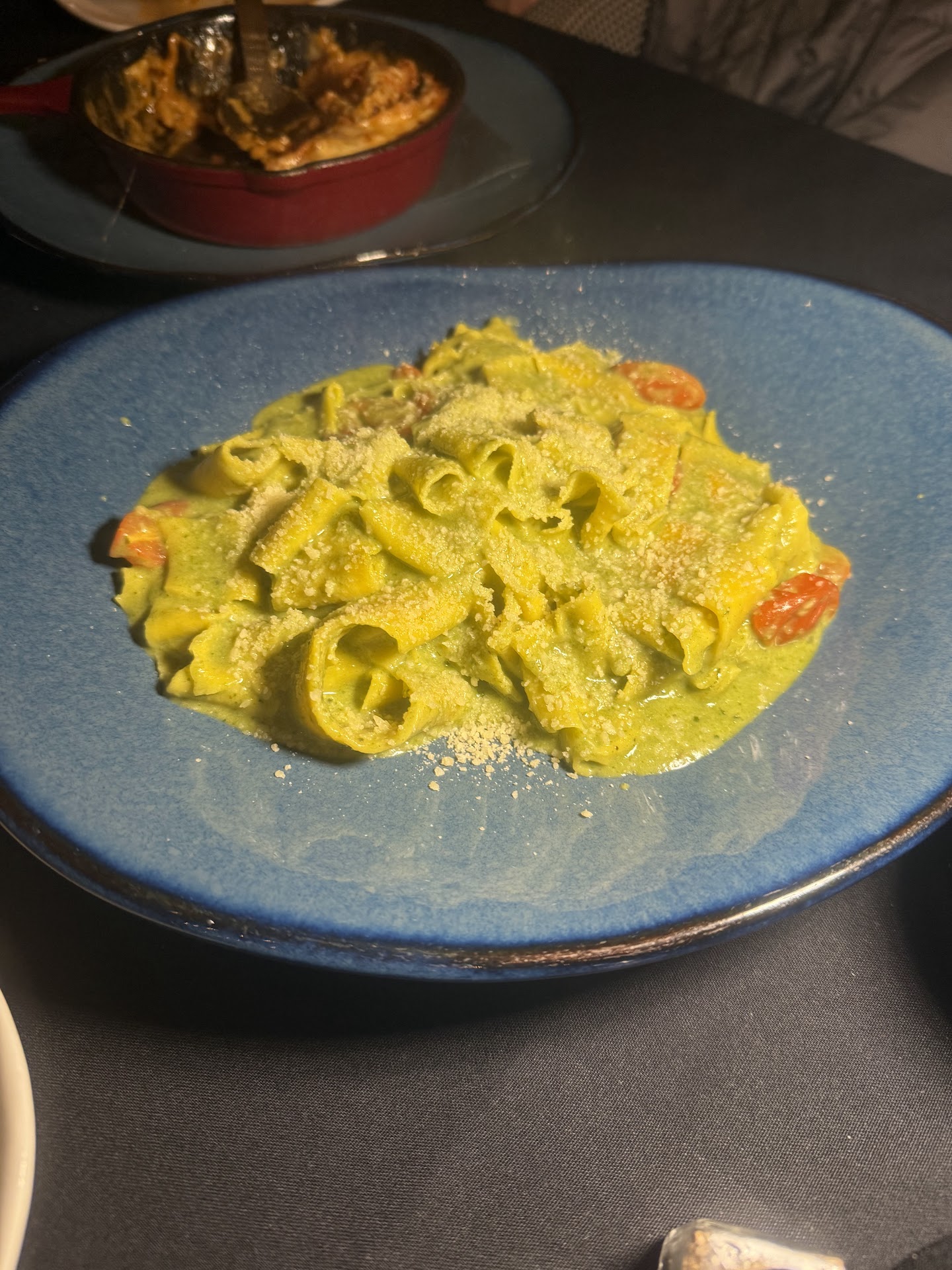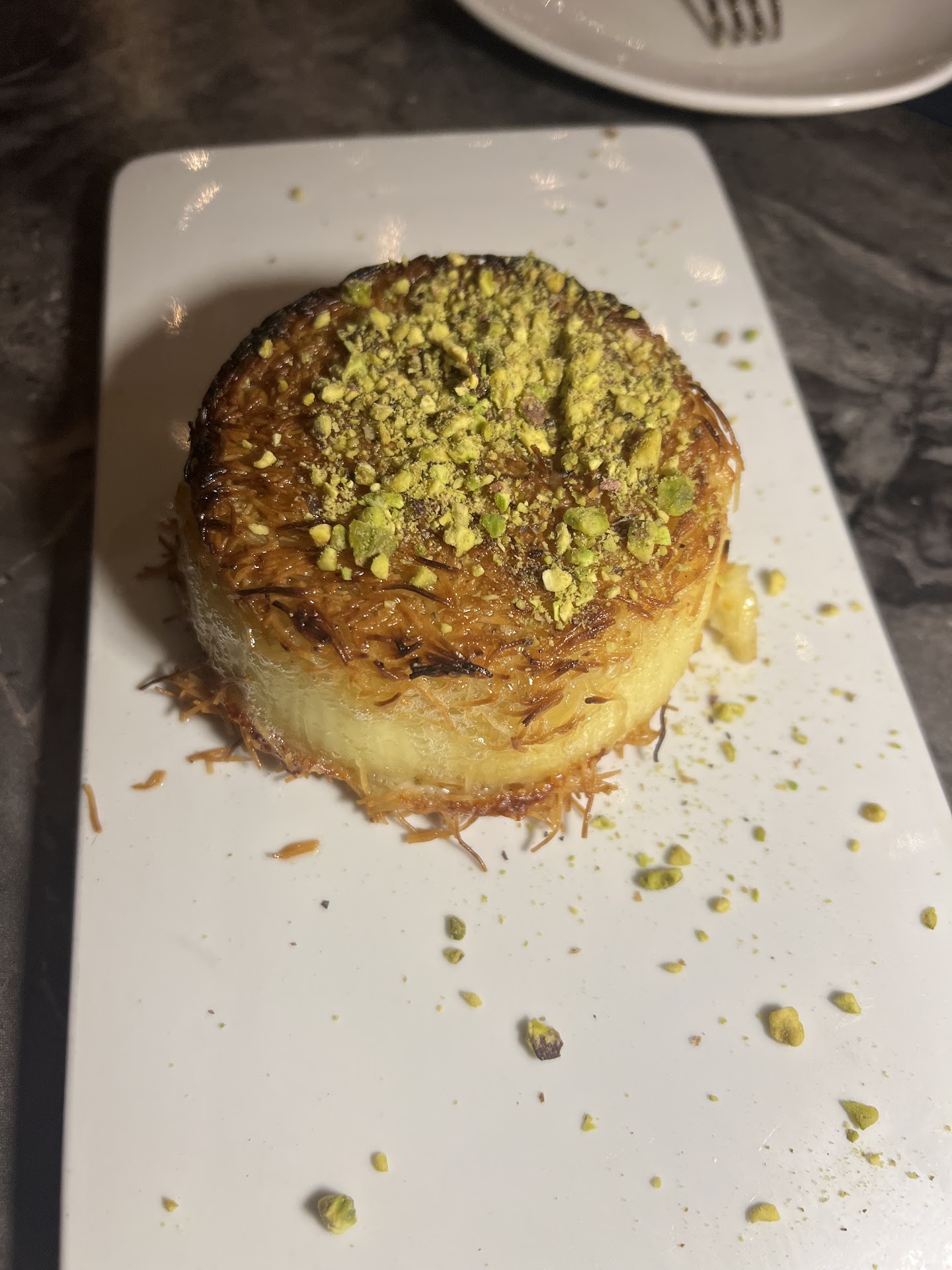On to the to food⦠The beet carpaccio salad was superb and we would order it again, it fused salty tastes of feta cheese and candied pecans over the salad and thinly sliced beets. The Bronzino was good, prepared in a white wine sauce topped with capers however it was lacking a drop more of a buttery seared finish Iām used to. It came with buttery smooth mashed potatoes and a small portion of veggie pasta on the side as well. Parmesan truffle fries were simply okay but not amazing. Lastly the dessert we tried was the Knafe and while we had our doubts that this middle eastern treat would be prepared right we were actually very pleasantly surprised.