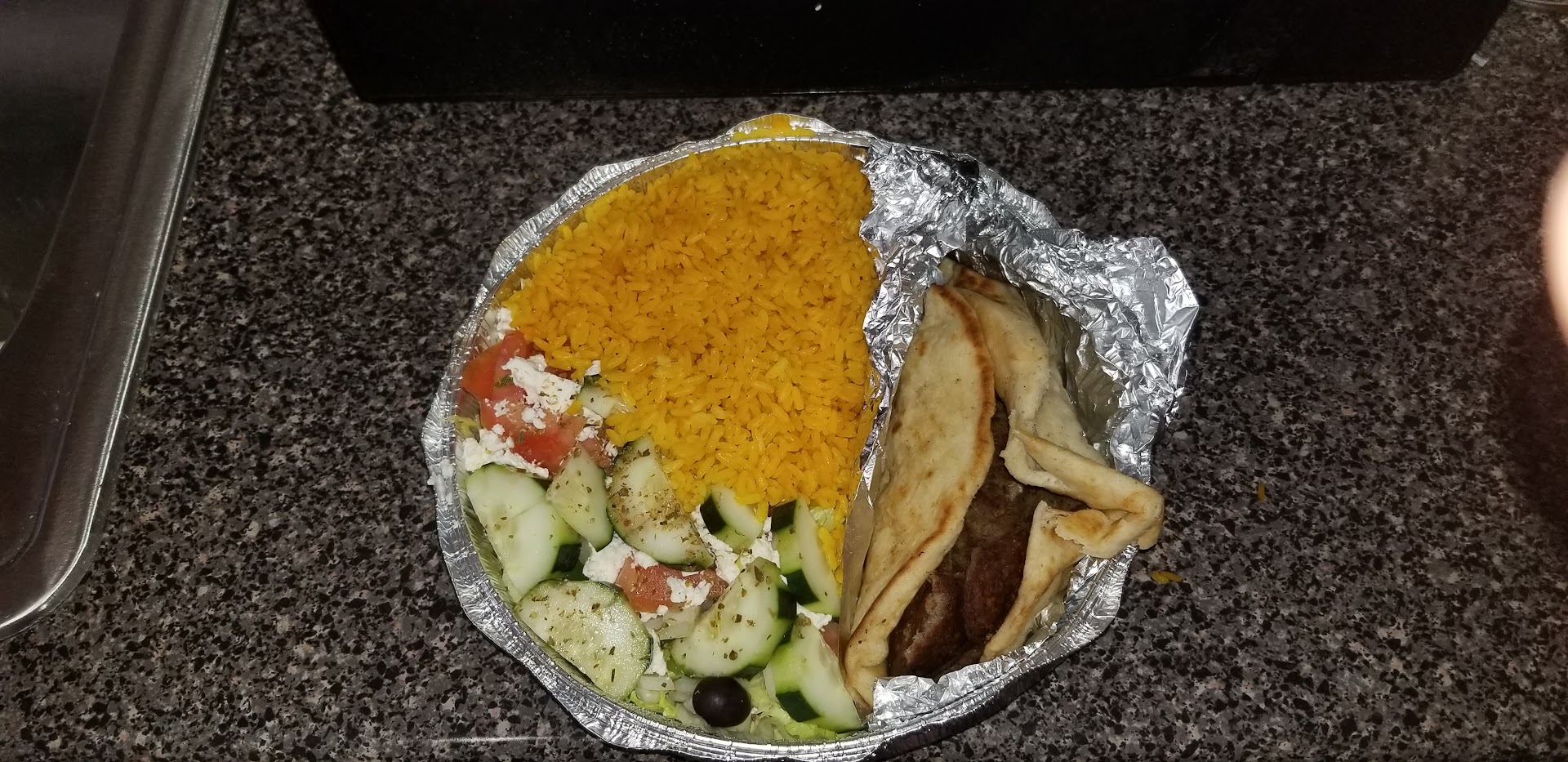 With more restaurants finally opening up since the pandemic I decided to give this place a shot since they had "Greek" food on the menu...I tried the Gyro platter with rice and it was okay. From what I could see it appeared that the gyro meat was frozen and not sliced fresh if you was at a Greek restaurant or truck outside. It was served with yellow rice which was bland in my opinion and a Greek salad that had lots of iceberg lettuce, tomatoes, cucumbers, onions, black olives with pits and a tad bit of feta cheese. It did not include the stuffed grape leaves that Greek places usually have...I think that this location is more breakfast friendly than anything else. I'm still new to the area and gave it a shot to support local businesses. At the time I went, I had to wait outside...