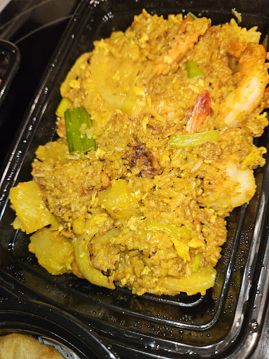 Made it home to open to a complete shock. The rice was mush. I mean overcooked mush with so much curry. After tasting it, it was like eating Indian food. The shrimp portions were good, pineapples, etc. But the rice was absolutely disappointing. The spring rolls were okay, a little on the soft and less crispy side. The wings were about my only favorite. Had a lemon pepper like dry seasoning to it.