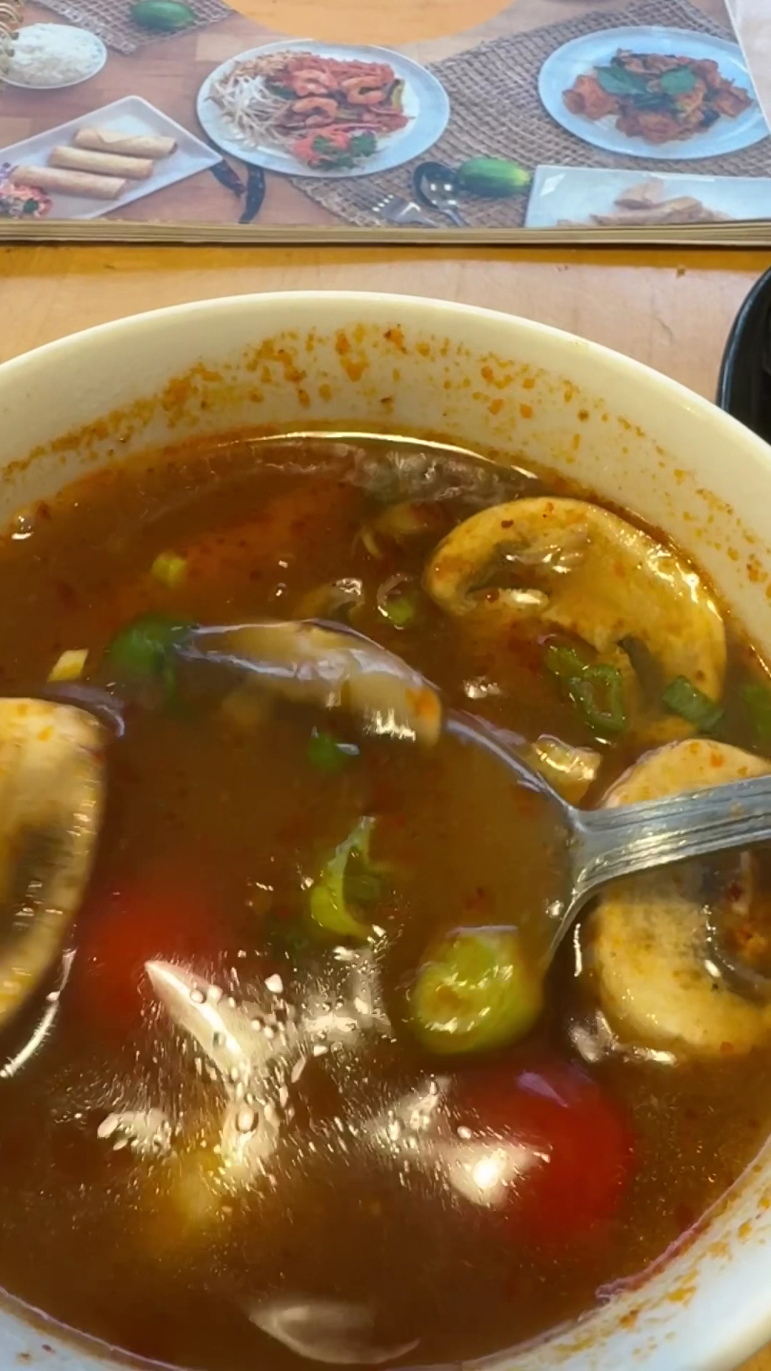 We ordered Tom yum soup which came with 3 shrimp and I must say it was delicious. Perfect tartness and spice.