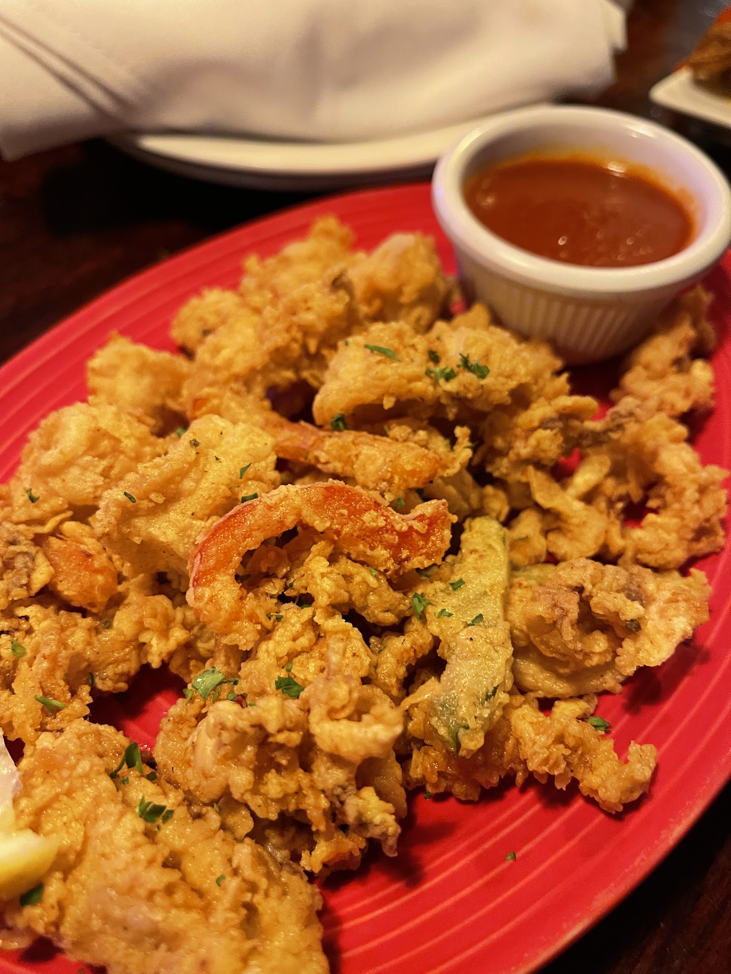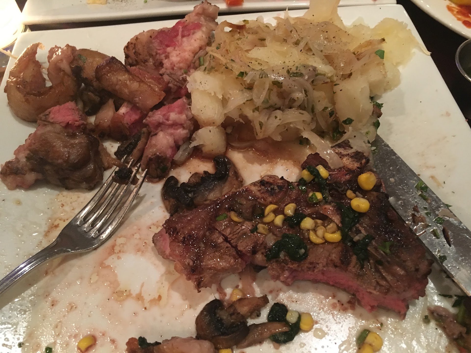 Now onto the food...as someone who has prepared (butchered and cooked) literally tons of steaks, I was extremely disappointed at the amount of fat that was left on my T-bone steak (see 1st picture). Without exaggeration, there was at least 8 oz. of fat that I cut off my steak. Secondly, this steak had absolutely NO sear on it whatsoever!!! Same goes for the filet mignon my wife ordered. At least my cut was cooked to temperature (medium rare). Unfortunately, my wife's steak was undercooked. She ordered medium and got medium rare.