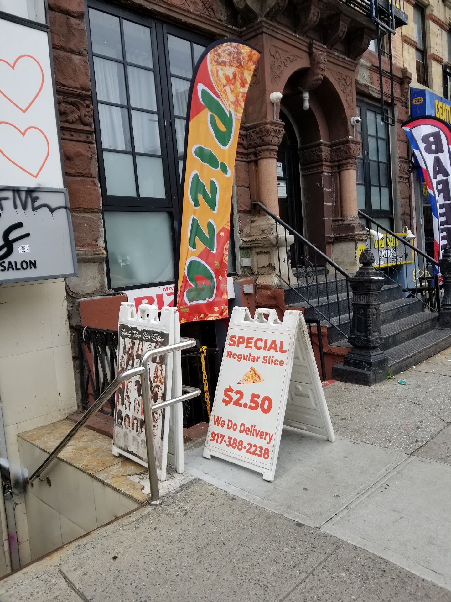 Delicious fresh pizza, so worth going back to. Restaurant has four small tables and six chairs. Some people don't care and will just hold a chair because they feel like. Either their bag is holding a sit or there is a person not eating and just on their phone. This is not a place were you want to chill because it is so small. But some people just don't get it. Eat and go or just take it to go! Best thing to do is take your order to go, there is a park and benches across the street just go there. In ths store some people just don't know how to move. There is very little space but too many individuals act like you can walk through them. Some people act like the Statue of liberty, so very annoying. The pizza is to tasty not to come back. I shall be returning and I 100% recommend this...