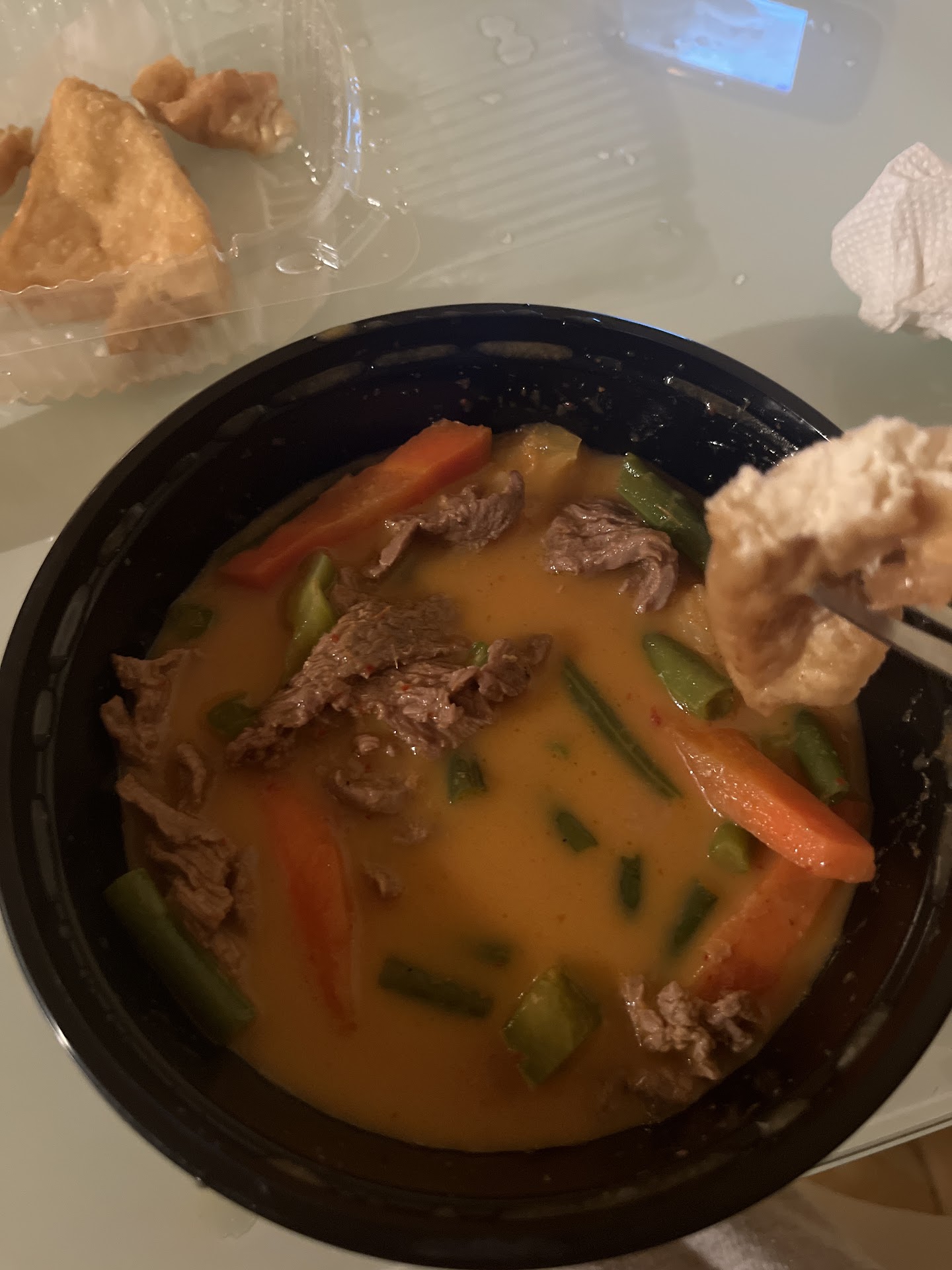 We went on a weekend to pick up dinner and the place was empty. Still it took a while for our food to come out. We ordered the pad thai, mango beef, tom yum soup and fried chicken wings. The pad thai portion was small and the noodles a bit on the sticky side. There were many clumps. The mango beef had a bit of spice and the beef very tender. The only issue was the mango being on the unripe side, very tangy and hard. The tom yum soup flavors were spot on and had a good amount of heartiness. The wings were the best of the bunch. They had a nice crisp, well seasoned and not oily at all.