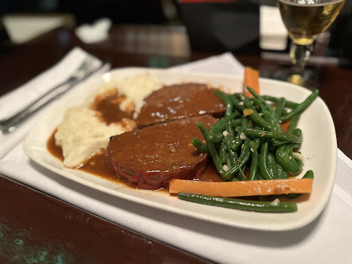 Read moreWe were party of 8 and ON WALKING INTO RESTAURANT WE HAD TO WAIT TO BE GREETED. THE BAR WAS EMPTY BUT FOR ONE COUPLE HE BACK ROOM WHICH HAD A NICE FIRE STOVE BLAZING. THE RESTAURANT WAS A LITTLE COLD. WE HAD SILVERWARE AND NAPKINS ON THE TABLE AND THE WAITRESS DISAPPEARED? 10-15 minutes later she came back and asked if we wanted drinks. Sodas and waters were brought .. She then took our orders afterwich she brought bread and as an after thought came back and asked if we wanted oill or butter for the bread. She did n't ask me how I wanted my burger cooked!? the group multiple dishes from shepherds pie to chicken pot pie bbq ribs and chicken francais chicken amalfi. All the food was underseasoned ! No salt,pepper garlic or added punch. I HAD THE HAMBURGER DELUX AND ORDERED A SIDE OF VEGETABLES. I HAD CUT THE BURGER IN HALF AND STARTED EATING IT AND GOT TO THE MIDDLE AND SAW IT WAS RAW! I CALLED THE WAITRESS OVER AND SHOWED IT TO HER AND SHE BROUGHT IT TO BE REFIRED.... aS AN AFTER THOUGHT I ASKED HER IF SHE COULD DROP THE BURGER CHAQRGE AS IT WAS A WASTE ANYWAY. AFTER THE FRENCH ONIOON SOUP I WAS PRETTY FULL. UNFORTUNATELY THE CHEF HAD ALREADY FIRED A NEW BURGER AND SHE RAN BACK VERIFYING I WANTED NO PINK IN THE BURGER! I GOT A NEW BURGER CUT IN HALF TO CHECK FOR PINK WHICH WAS HALF THE SIZE OF THE ORGINAL BURGER WITH A SMALL PORTION OF FRIES. THE RESTAURANT DOESN'T ACCEPT CHARGE CARDS OF ANY TYPE! I HAVE FOUND THIS TO BE A SIGN OF BUSINESS LOSS. OVERALL IT'S NOT A BAD PLACE BUT THE SERVICE YESTERDAY WAS TOO SLOW. ALSO NOT THE FRONT ENTRANCE HAS A FULL STEP UP TO GO IN. THE BATHROOMS CANNOT ALLOW A WHEELCHAIR TO PASS INTO THEM. HANDICAPPED PEOPLE WOULD HAVE TO BE LIFTED OVER THE STEP AND HELPED IN...
