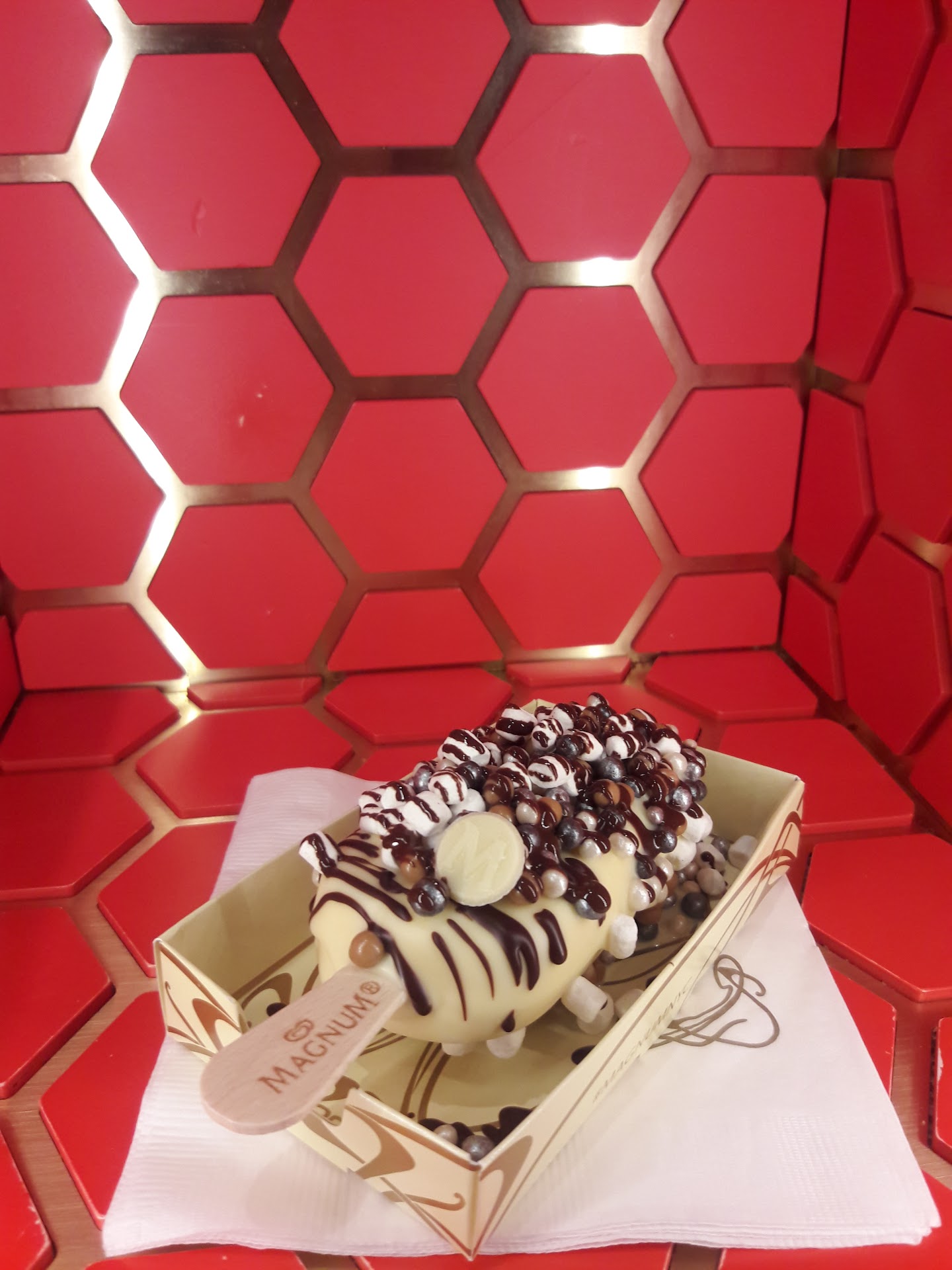 There are 2 things I like the most in this world: Ice Cream and making people jealous on Instagram, and the Magnum popup is able to fulfill both in one fell swoop. Although the line can snake back and forth through the store and the price can reach an eye-watering $8 for a bar, it is worth it to watch a work of edible art being created right before your eyes (then devoured right after). After you chose a flavor ice cream, you get to select 3 toppings to put on the bar, then watch as it is created right in front of your eyes. Employees coat the bar with dark, milk or white chocolate then cover it with your chosen toppings and give you a sweet treat that photographs better than the Red Capet on Oscars night. To that point, right to the right of the counter, the store has put together a few photo boxes, backlit and set up to get the perfect insta-worthy photo to make everyone green with envy.