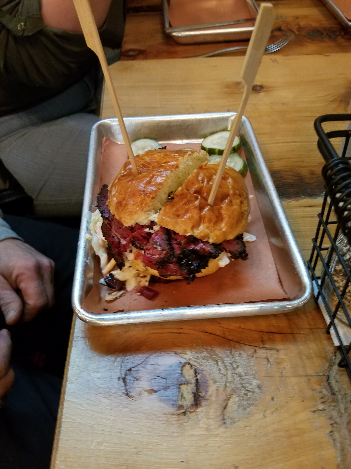 Read moreNice experience. Some menu items weren't yet available, but service was fast. Sara did a great job taking care of us. Was only about 3 other tables taken there, so wasnt very noisy. Menu still hasnt been designed and printed nicely, was just a few stapled papers, but the waiter did a good job answering questions and making recommendations. Chicken soup was oily and tasted more like a beef soup, but the waiter readily took it back and off the bill. Texas fries were nice and fresh, and a large serving. Ordered the 1lb ribs, was smoked nicely and was huge, more than enough for the two of us. My wife asked for more mash which the waiter promptly served. Avacado salad was nice and fresh and well presented. Desert was regular choclate suofle, but they were out of ice cream, so they replaced that with 2 fried oreos. Looking forward to coming back when all menu items are available and the chicken soup has...
