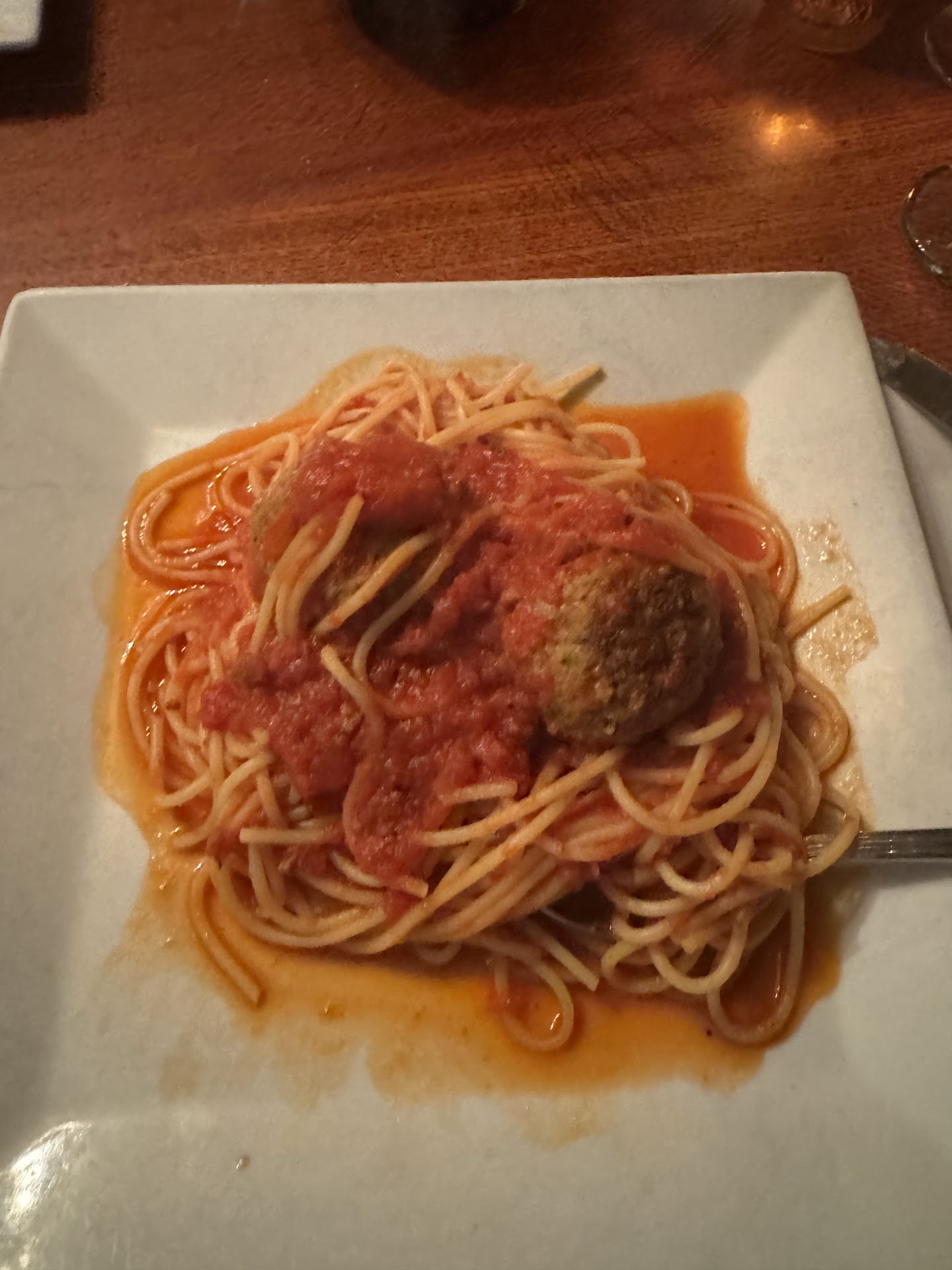 The manager was extremely apologetic and took a few items off our bill to compensate for the frustration. She also begged us to come back another night and give the restaurant a second chance. When the food finally did arrive, it wasn't bad. The spaghetti and meatballs honestly hit the spot.