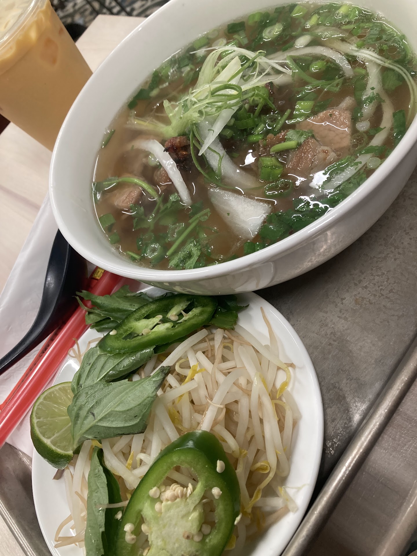 This little gem recently opened up around the corner and I couldn't wait to try it. I ordered the beef pho and shrimp summer rolls. I could've done without the shrimp summer rolls — nothing over the top and it seemed like it was pre-rolled instead of made to order. The pho, however, was incredible! The broth was so delicious and has so much flavor. They also don't skimp with fillings. Great portion of noodles and veggies and the beef was so tender.