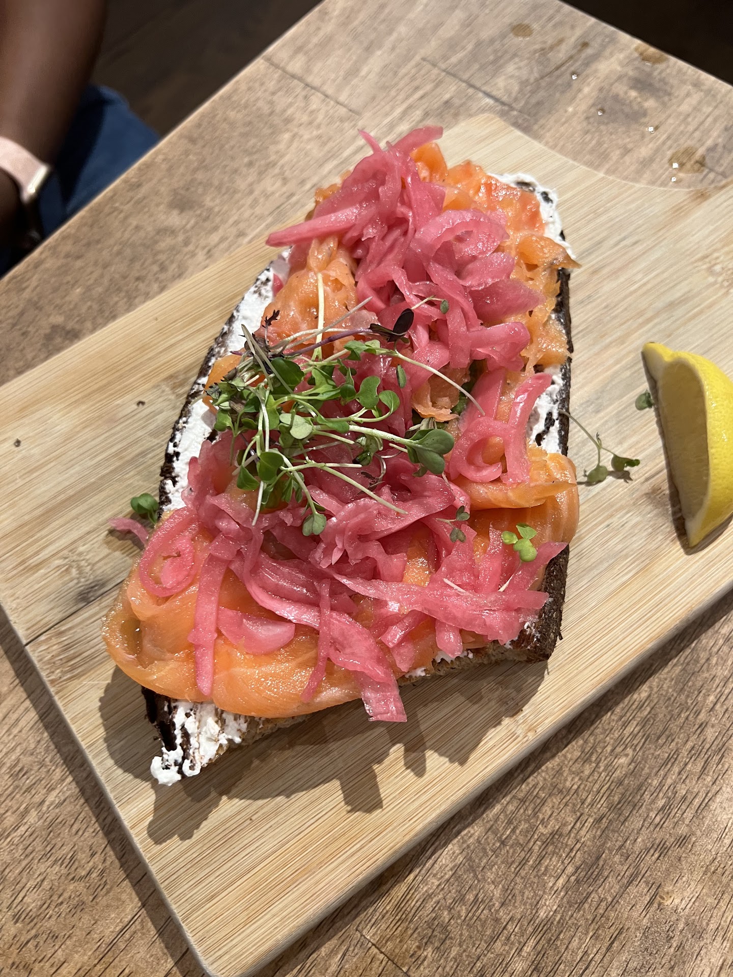 I had such a great lunch at Maman the other day! A friend of mine had told me about it so we decided to go together with a few other friends. I found on their website a coupon for $25 off of $75 purchase if you get the inkind app. I figured why not if we were going as a large group we would definitely hit $75 especially because we wanted to try a few pastries. The inside is beautiful and the guy who took our order was SO friendly and patient while I tried to get the $25 discount to go through (it was a little complicated but worth it!). There was a large line stacking up behind us (sorry everyone) but he never rushed us. We ordered 2 ham and cheese croissants (really good although I hoped for more pickle than just one small one on top and maybe more mustard flavor, plus it was a little burnt), the chicken salad sandwich (my friend said it was great and it was huge!), the smashed avocado tartine with salmon added (also massive and my friend liked it). We also got pastries and just split them between us all including: banoffee cruffin (delicious), pina colada croissant cube (delicious and probably my favorite of what we tried), pistachio chocolate croissant (also delicious and probably my second favorite of what we tried), the Paris to new york croissant (this was a little hard on the outside so maybe not very fresh. The inside was good but just too much chocolate for me), and finally the s’mores cookie (this was just a basic cookie for me nothing special and I wouldn’t get it again). Our food came out quick we had a great time and saved some money! I’d definitely recommend it and...