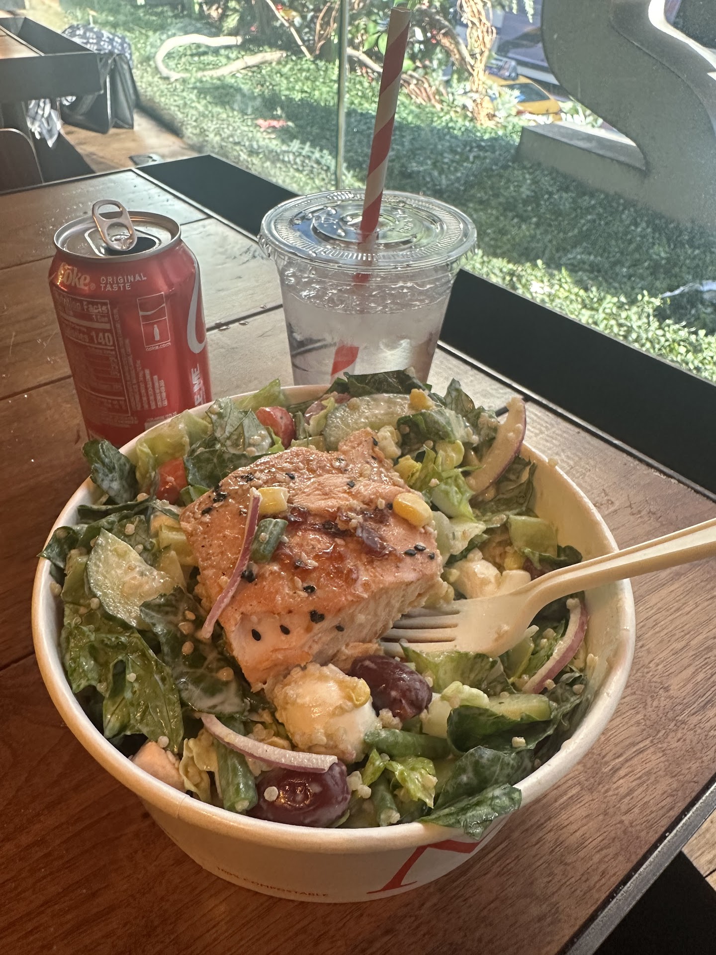 what a lovely place, the food is fresh and taste amazing.. it's a bit not clear how and where to order, you should go directly to the kitchen and order your food over there, later on you will have to pay your order at the entrance. if you would like to have your course served not in a plastic plate, you will have to go upstairs and to place your order by the waiters. They have a great Italian coffee