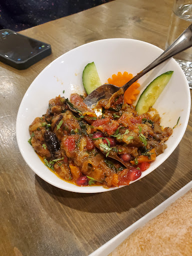 We ordered the eggplant appetizer with pomegranate and was really great. We also had the freshly baked bread. Which was enough for a table of 4. The appetizers really made an impression in terms of flavor and texture. Went incredibly well with the freshly baked Georgian bread! This combo was the best from the whole meal.