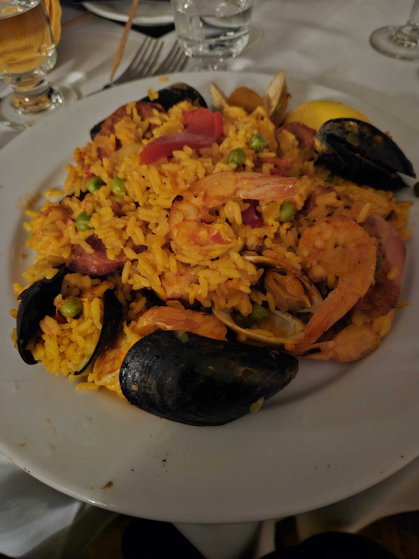 Read morefirst time here. came to celebrate a retirement for someone who greatly deserves to enjoy the rest of her life without worries. but let's get to the food and drinks. Arrived by 740pm. Seating was pretty quick. Waiters, Runners and possibly the Manager not sure we're very polite and extremely professional. Asked the wife and me for what we would like to drink and then awaited for to be asked what we would like to eat. meantime we were moved and seated with the retirement party afterwards where we gave the table waiters our peference of what to eat. 810pm we gave our orders and drank water and a Raspberry Margarita. The wife preferred if her meal (appetizer: Aguacate Relleno De Mariscos & a side of Fried Bananas ) could come out with my dinner a Paella A La Valenciana. Food started coming out to the table around 920pm. Waiters were a bit confused serving the table of 30+ individuals and weren't sure as to whom order what. which was a bit shocking when they wrote it down. my wife and I didnt receive our food until 940pm. At this time they also forgot the second choice my wife wanted and wasn't served to her until close to 1000pm. As far as my Paella A La Valenciana. the surrounding of my plate were colder than the AC that was pumping in the room. All the shrimp, mussels and shapes were cold as if they just pulled it out the fridge. The paella itself was tasty and delicious. which came with 2 small pieces of chicken legs who's legs part was cut off. Overall: The music was good, staff was great, food I would have to maybe try again. but for now I don't think I will visit anytime soon. unfortunately. thank you for...