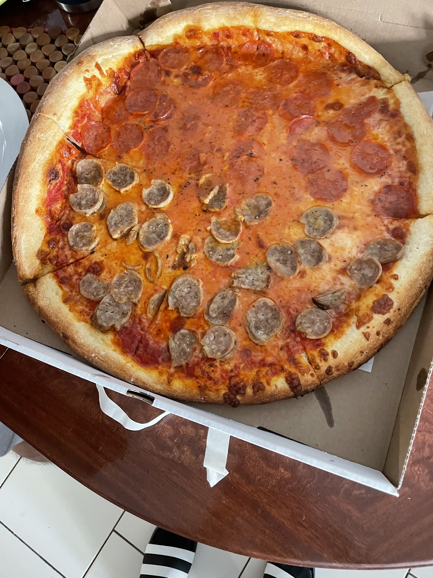 This place isn’t too bad. The crust is made with salted dough so if you’re used to that mild sweet crust from other pizzerias, you won’t find it here. Because of this, it’s a bit saltier than usual but it’s still good nonetheless. They use a different oil or spices because there’s a slight different flavor to the pizza too. It’s pretty good if you’re hungry though, so don’t be afraid to give it a shot. Costed $24 for a pie with toppings. By the way you’ll only have to wait for one or two people so there’s not much of a line to wait for. There’s two people that make the pizza, if you wait for the guy with the mustache, he makes it crispy, while the darker toned chubby guy with no facial hair makes it soggy. So...