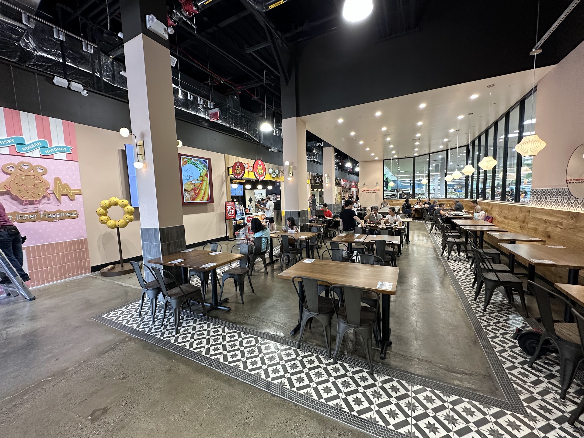 Read moreH Mart has many food halls built adjacent to its markets, and this one is very similar to others. This location features ten vendors, each with its own counter and menu. Seating is communal, with a combination of extended bench seating and standard four-top tables.