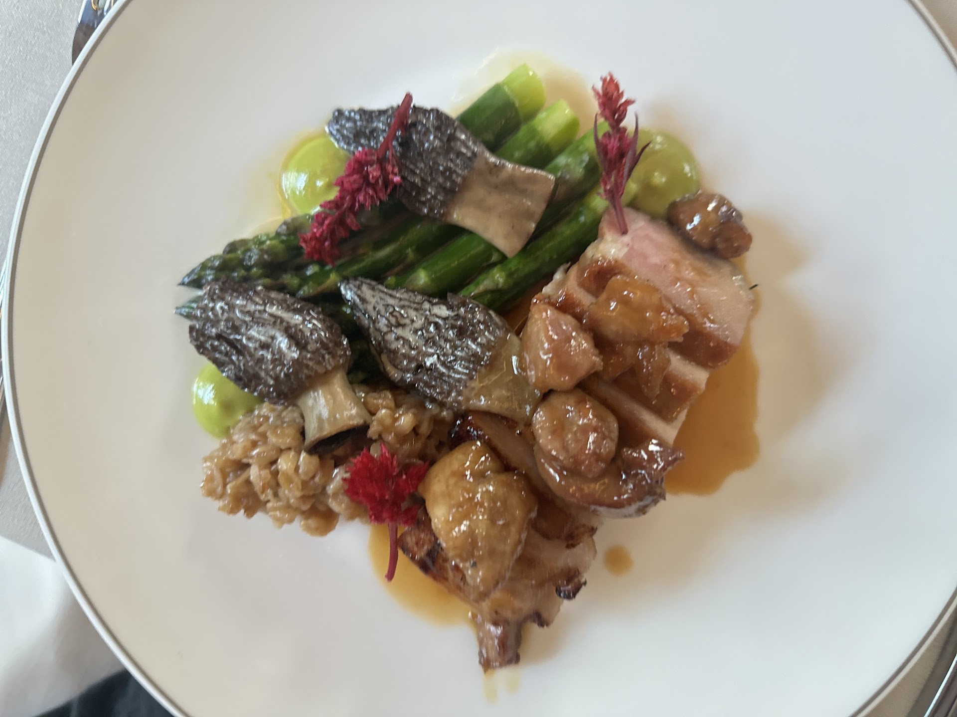 For entrees, we shared the pork chop, which was paired with morels and asparagus in a way that felt indulgent yet refined—honestly, what dreams are made of. The crab agnolotti was another standout: a surprising but perfect pairing with the pork chop (yes, we shared everything!) that was light, rich, and full of flavor.
