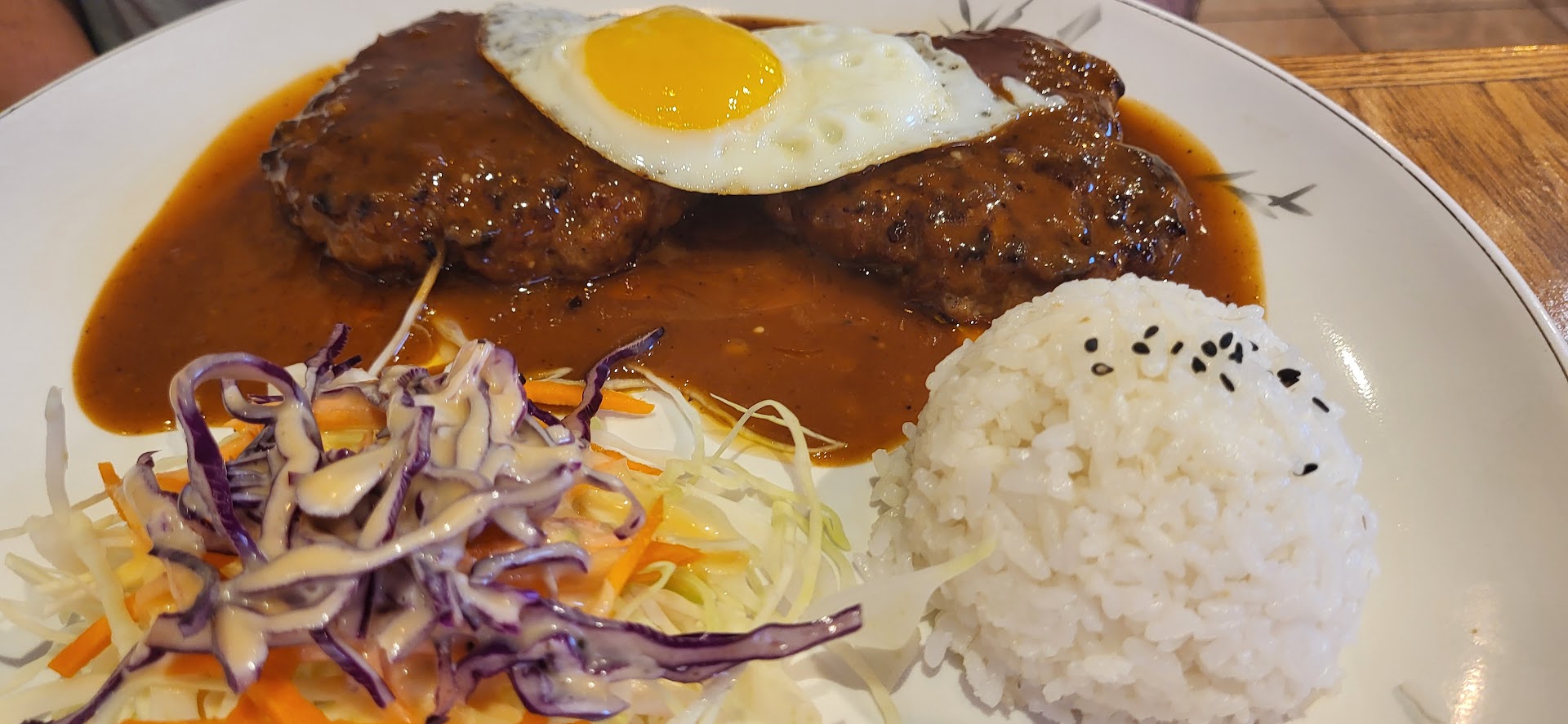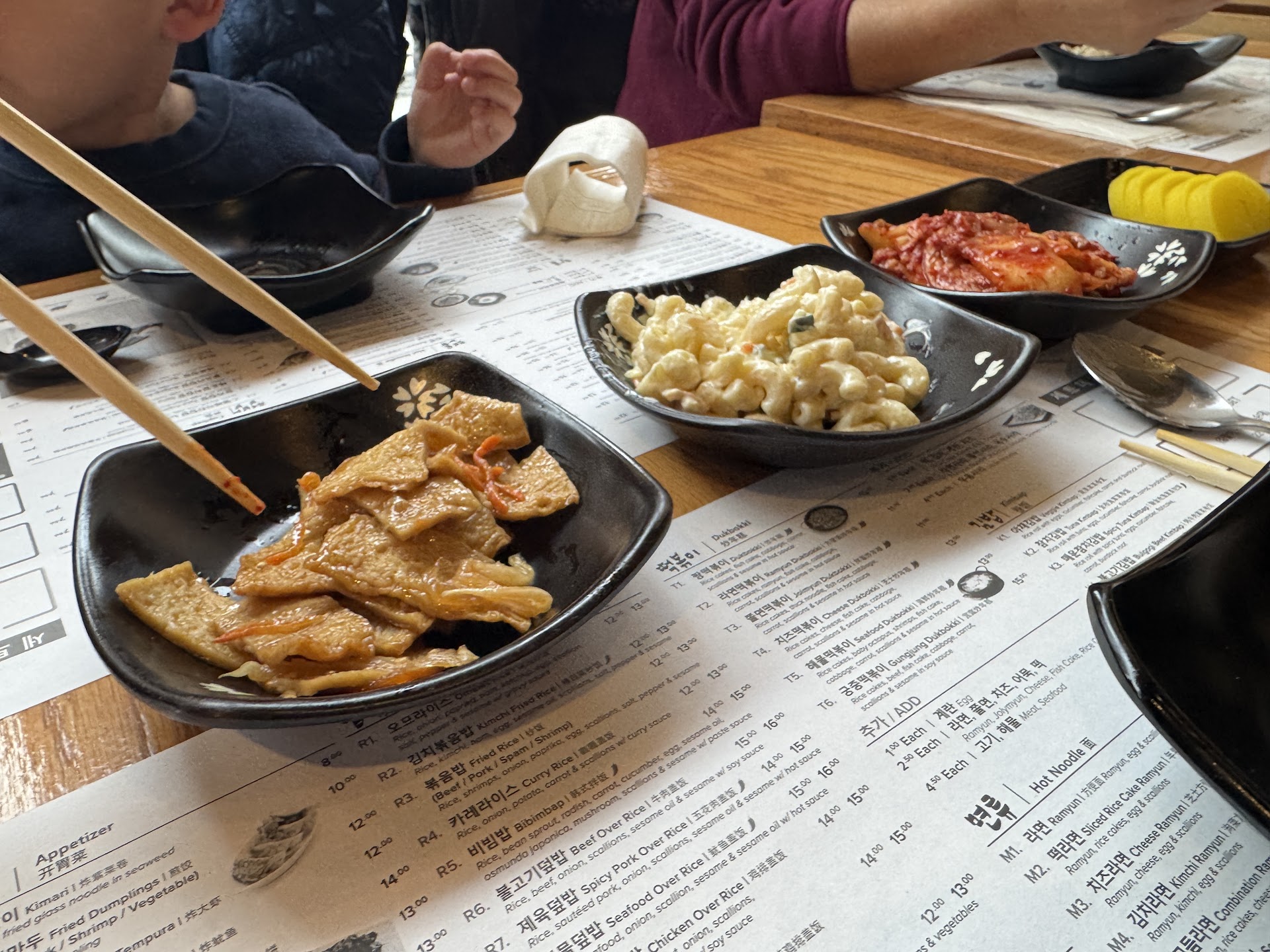 Read moreFood was very good! Portions were bigger than expected. The dumplings had thin wrappers and a crispy crunch. I very much enjoyed them. The Bimbimbap was flavorful. The Burger Steaks were a bit sweet which was unexpected, but yummy. The cold pasta salad was very refreshing, slightly sweet and had a good balance of all the flavors and veggies. I'm not a fan of cold macaroni salad, but this one was so tasty. The fish cake had a nice soy sauce brine. I have never had a fish cake with that depth of flavor in it. The kimchi had a good crunch. All of the foods balanced each other out and I left with a satisfied palate.