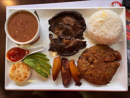 Francisco brought the Bandeja Vegetariana to me—but I noticed it had an egg on top of the white rice, which confused me, as I had specifically requested a vegan meal. I asked Francisco about the difference between vegan and vegetarian, and he admitted he thought they were the same. I appreciated his honesty and asked him to speak with the manager. Julio quickly came over and kindly offered to replace the rice, as some egg yolk had dripped onto it. He also offered to remove the cheese from the rest of the dish.