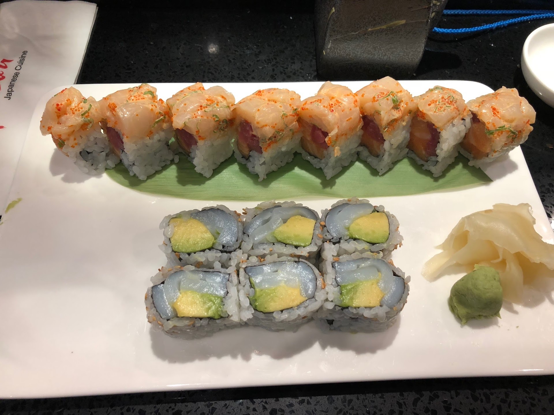 Some advice let the sushi especially the sashimi sit for 10 minutes so its more room tempuratue I found that they keep their fish very cold and it takes away from the flavor and texture. Let it sit out for a little bit.