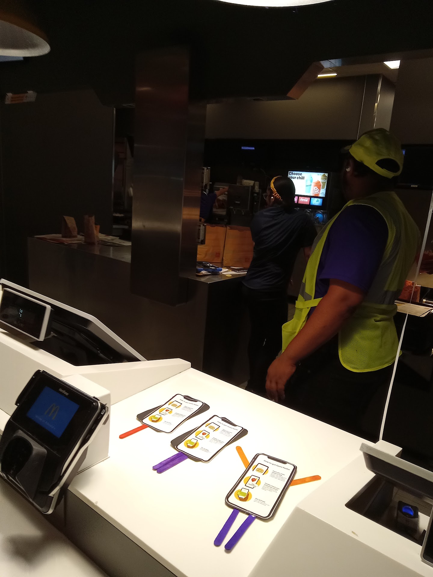 Read moreAs far as McDonald's go, this one has a VERY chill and relaxed vibe. The seating arrangement is unique with a large triangular bench pit in the center of the store that accommodate 15 -20 guests at about 6 tables that swivel around and even fan out for more tabletop area. Very cool. There's plenty more regular booth tables lining the outside of the triangle shaped room with a small party section to one side towards the rear.