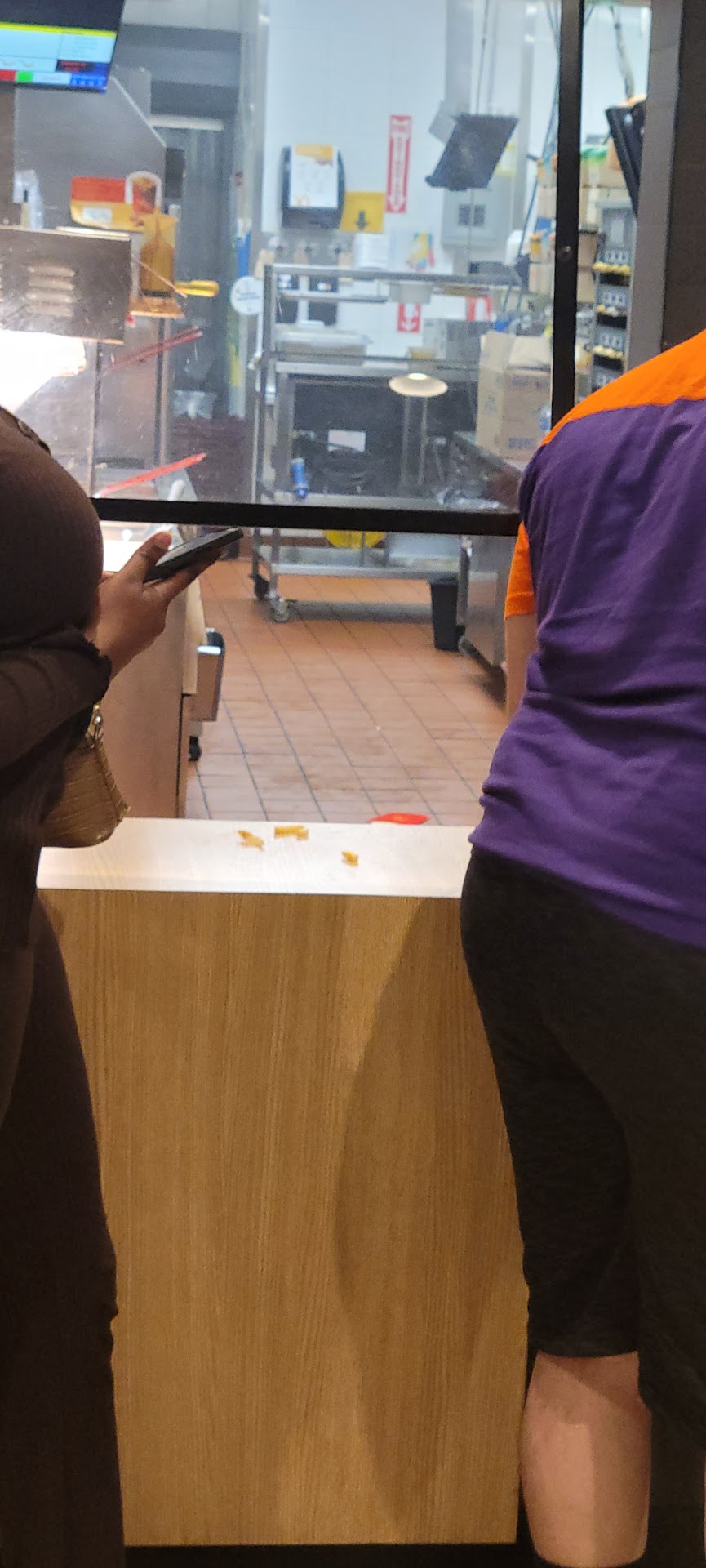 Prior to walking in to this particular McDonald's, I peeped thru a window to see if the line was long as well as how many cashier's registers were open. There were 5 people total behind the cashier's counters, 3 people at 3 separate open registers, 2 others helping to hand out food prepared. I counted less than 3 people in each line so I decided to go in. I stood behind one customer and he and I were the only ones in our line. I waited over 10 mins after the cashier took the customer's order standing in front of me. I just walked off the line after I began to get so frustrated that the cashiers were busy looking at their phone, laughing, joking around and I was starving so I just decided to leave, hungry as I don't know,what!!! They were way too slow n I was tired of waiting for over 15 mins and my order hadn't bee, taken. Also, there's always someone trying to act as if they are a doorman asking for money because they chose to hold the door open for u. They try and make u feel obligated to give them money for sevices they themselves volunteered to do. I thought volunteers worked for free? Well,At least I worked for free and I did not receive compensation for volunteer services that I had provided...