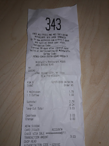Read moreToday I went to my local McDonald's on Queens BLVd and 38th Street. While I always order drive thru, I decided to walk in and use the restroom before ordering. A man who appeared to be the security guard( had gear and a broom and dust pan) , claimed to be cleaning the restroom. Then as he walked out,he asked me where my receipt was. I was going to order food after going to the bathroom. The man was so disrespectful and insisted that I go to get food first. Then he was making a fuss about it. Implying that I wasn't going to order any food. I truly felt disgusted and honestly makes me not want to go back there to dine in. Shortly after I DID order the food, this same man began to associate himself with some teenagers that were there. Clearly demonstrating some sence of immaturity. Once I left with my food, because at this point there were so many people and I was annoyed, I noticed this same man saying something similar to a man that was entering the bathroom. Why are you lying for? Go order your food. That's why you need to order your food first. I'm sorry but if this is how this man is treating his customers, they are going to loose a lot of people. If what customer's need is a code to enter the bathroom then they should properly install one and include in the receipt. It is not OKAY for that security guard or whatever he was to be rude or disrespectful. My food was great and the rest of the staff behind the counter were diligently working and on task, but the security man dressed in black with yellow...