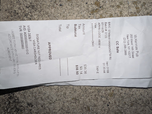 A Pricey Adventure That Left Me Laughing (and My Wallet Crying) Oh, McKenna's Pub, where do I even begin? My night at your establishment was nothing short of an adventure filled with laughter, good times, and the most shockingly expensive drinks I've ever encountered. When I looked at my credit card statement the next day, I nearly fainted! Sometimes you must pay extra for a night of unforgettable moments. First, McKenna's Pub knows how to create an atmosphere begging for a good time. The lively music, the vibrant crowd, and the energy in the air were infectious. It's as if the place was whispering, "Come on, let loose and have a blast!" And boy, did we ever. Now, let's talk about those drinks. They were a work of art. Bartenders at McKenna's are true magicians when it comes to mixology. They skillfully crafted strong yet straightforward beverages but charged a king's ransom for it! I mean, seriously, I haven't seen prices like that since I accidentally wandered into a five-star hotel's bar. My wallet still shudders at the memory. But let's not dwell on the cost too much because the experience was worth it. While having the time of my life, I was sipping my pricey drink surrounded by friends, family, and randoms. We laughed and made memories that will be cherished forever. And even though my bank account took a hit, I can't deny that the laughter and joy were priceless. So, if you're willing to splurge a little and have a riotous time, McKenna's Pub is the place to be. Ensure you bring your sense of humor and a backup plan for your finances. Because after a night here, you might need a second job to afford your next grocery run. Who needs groceries when you can reminisce about that wild night at McKenna's? Cheers to McKenna's Pub, where the drinks may be expensive, but the memories are worth every penny...