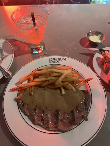 Read moreI was quite happy with my experience dining here. I do not have that much experience with set menus, but I understand why they confidently serve their signature dish because it was delicious. I am not someone who typically eats steak without bread and cheese; it is almost always in a sandwich when I eat it. I was perfectly satisfied eating the steak as served, and the fries were delicious. The staff was quite attentive as I only needed to call our server over once which is pretty good. I like the fact that they served two rounds without even being asked. I know their usual portion is 2 rounds, but I appreciate when I don’t even need to ask. They also nailed the cook on the steak (I ordered medium rare). The dinner came with bread and a salad; one suggestion I have is to offer another starter option besides that. I can’t speak for most people, but I personally do not like veggies very much, so offering a soup or even a small fried union string appetizer. There are other options as well, that is just a few suggestions. I loved that they had free refills on the soda, but their cocktails were a little pricy for me to try (around 16 bucks). I have seen worse, but that is a bit above what I am willing to pay for a drink. I had the carrot cake for dessert which was a little bit of a let down. It tasted fine, but for around 12 bucks I was expecting a bigger peace. Overall, the main components of the meal were nailed as the steak and fries met my expectations. Their secret sauce goes well with the bread as well and I would consider buying a bottle of it to take home. The atmosphere here was quite nice as well; not too loud and I was easily able to talk to my friend without yelling. Keep it up as I definitely...