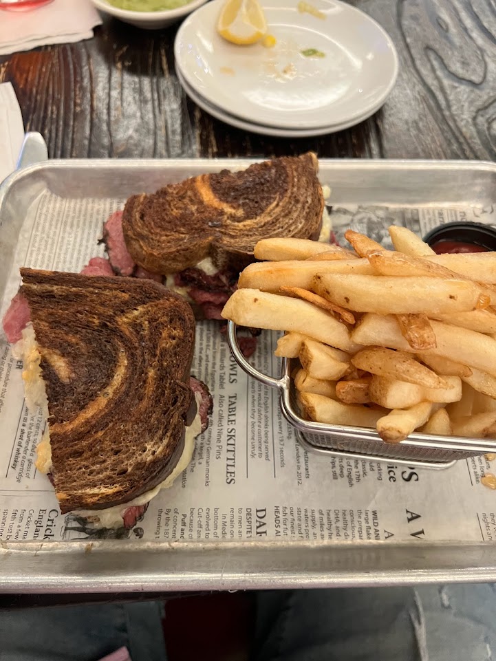We started with delicious Teriyaki Chicken Dumplings. My daughter ordered fish and chips, and I had The Bavarian sandwich (pastrami). Food was fantastic, portions on a large side. As my daughter said, I think I have a whole fish here.