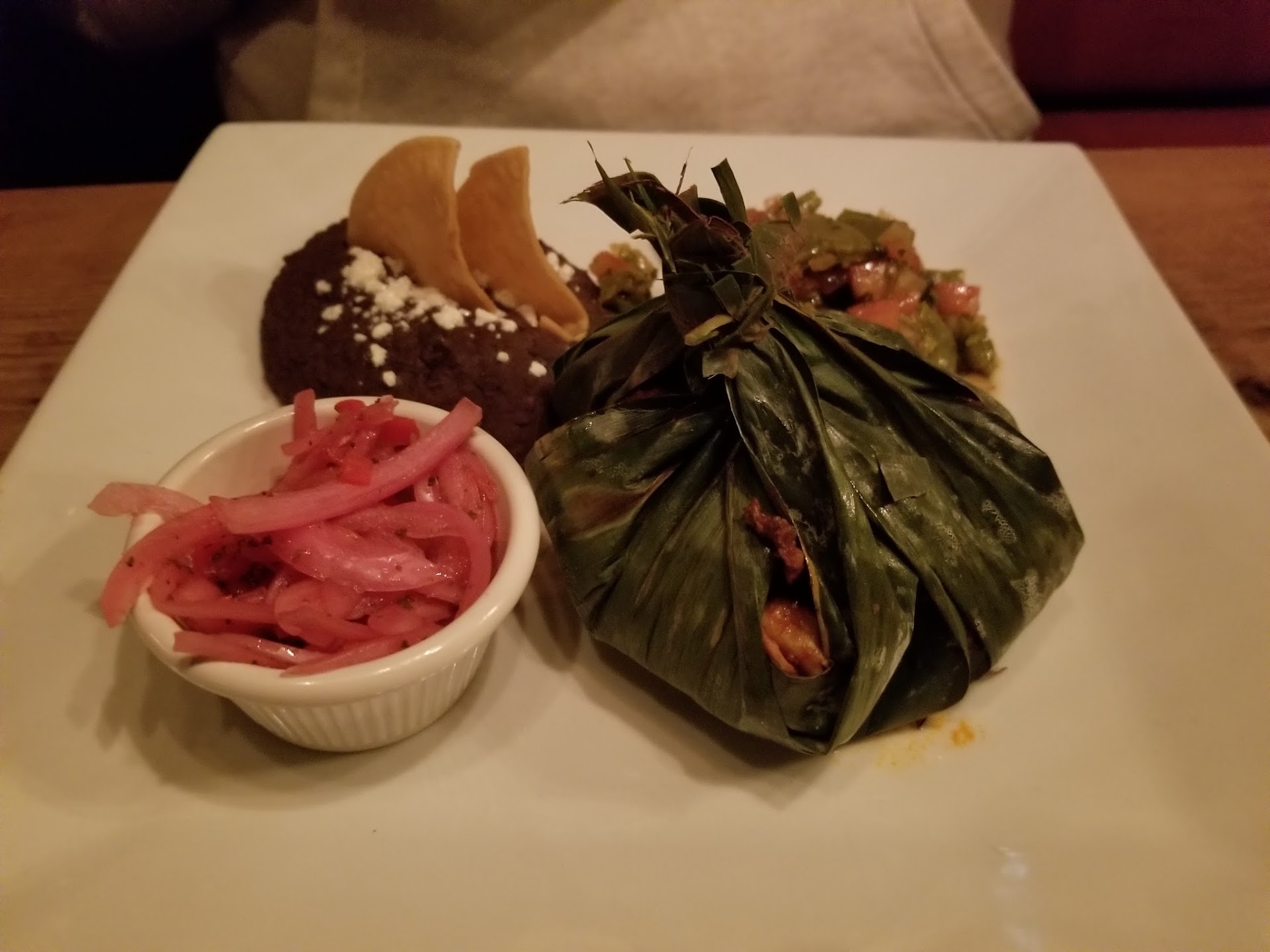 Mixiotes de Carnero: A My brother in law ordered this. The banana peel keeps the meat very moist and tender. Nicely spiced. Excellently cooked. Beans were yummy and presented beautifully. All in all this has every trapping of a chef's signature dish.