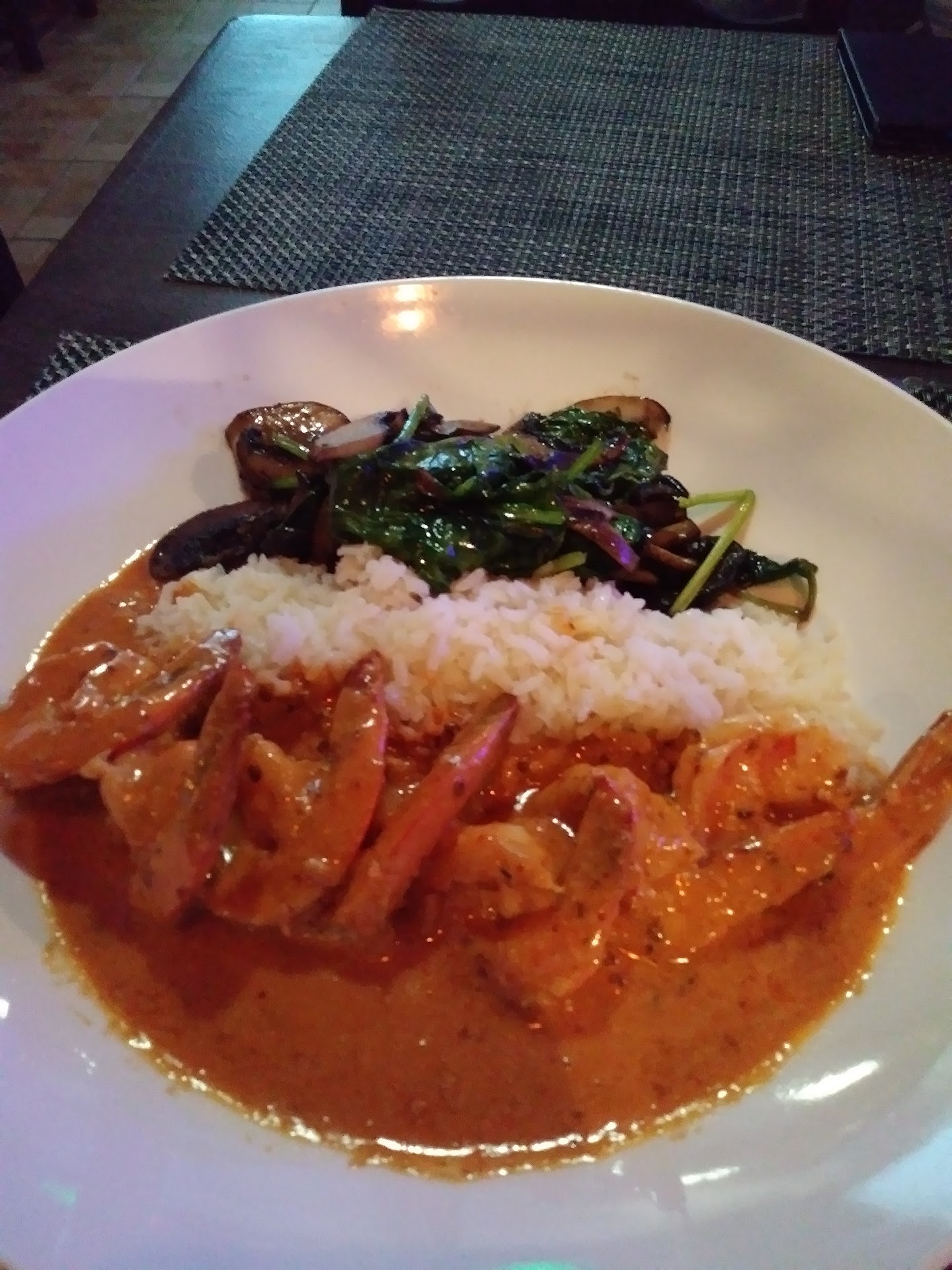It was 4 large shrimps, some mussels, 4 big bowls of rice in one portion and 4 scallops, after eating what I could, I asked that they pack it in a to go container, the rice filled 3 to go containers. My friend didn't have a refrigerator in his hotel room so we would have spent money and thrown out the rest of the food if I wasn't living in NY.