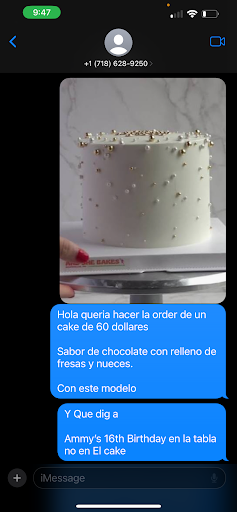 Read moreI donât recommend this place to anybody. I ordered a cake with this spot, mind you I had an order that cost me over $100. When I received my cake and opened it at home I was disappointed. I couldnât do anything at that point because this cake was done for an event. My cake was not the flavor I asked for, they had used a previous old cake which is very unsanitary and disgusting. I knew my cake was just mixed together from old cakes and when I made a compliant, they did nothing. Donât waste your money this place clearly profits on being unsanitary and takes old cakes to make your cake, they stack it together put icing and will overcharge you. Never will I buy from here. Itâs add on that theyâre staff is rude (the woman there...