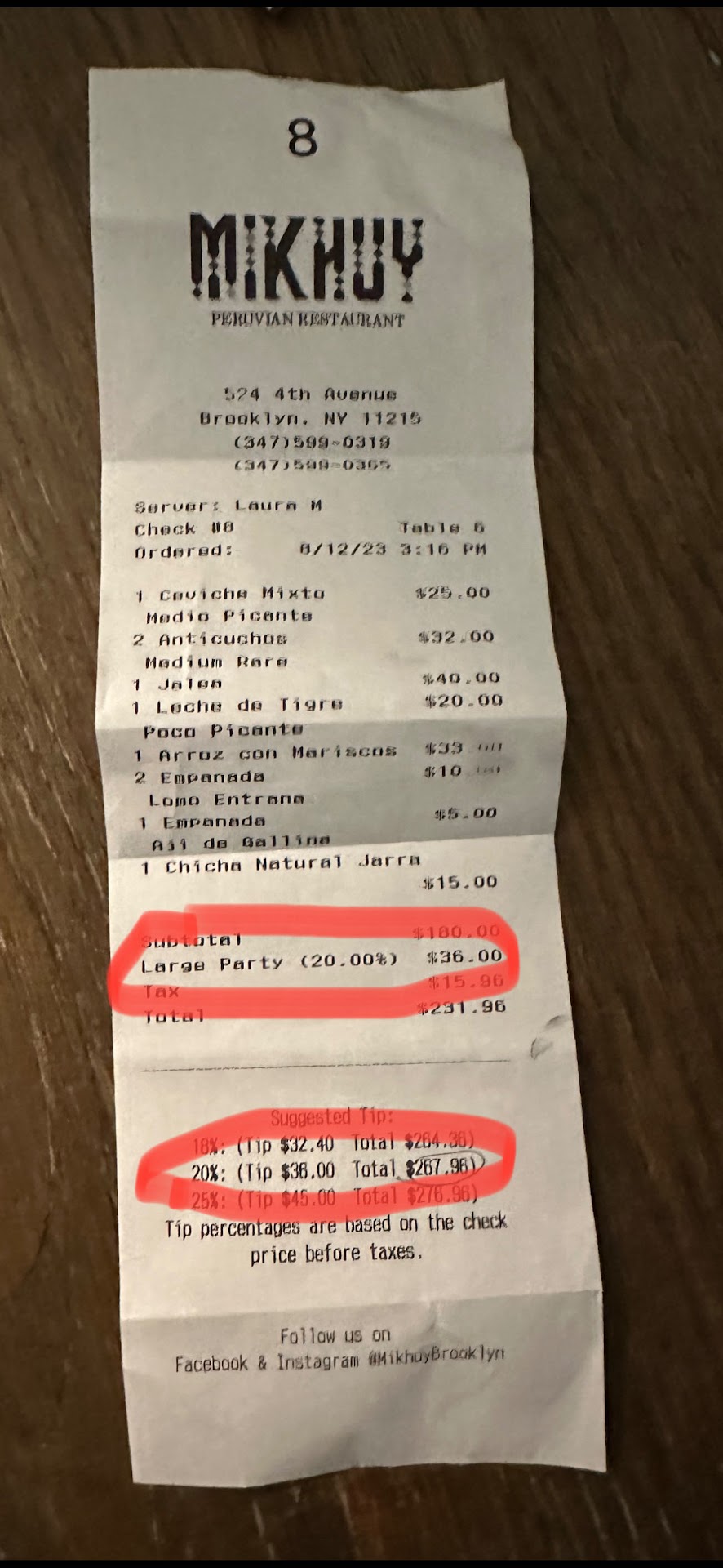 We came on a Saturday, mid-afternoon, five people. First thing we tried to order, a soup called the Patasca (which it says is only available on Saturdays and Sundays) was not available. Two people in our party ordered the Parillada, and they came back to tell us that half of the items were unavailable. They wanted to change the order completely but we suggested they add more of what they do have instead, they agreed. I wanted to order the skirt steak with two sides, but instead of one of the sides (each one is $6 on their own) I wanted them to add the shrimp to my order (which they charge an additional $5 for when you order the steak). They refused. It was saving them $1 which isn’t the point, but it wouldn’t cost them anything to make the substitution, they couldn’t explain why they couldn’t do it. The parihuela, for $28?!! The bowl was the same size as the $8 soups. I understand there’s seafood in it, but that much for a medium size bowl of soup? I’ve never seen anything like it. The yuca a la huancaina was almost raw, it was so hard not boiled through at all and it came cold. The rest of the food was good, but not memorable. We had to ask for our water to be refilled. We also had dessert and one of them was not available. Some of the issues I understand is not the staff’s fault, but it just shows poor planning and management. How are you out of meat from a popular dish mid-day Saturday? Not to mention the other things they didn’t have. They also added a large party charge to our bill (for a group of 5?!) which was not mentioned anywhere beforehand. They said it’s just service charge, 20%, since when do we automatically charge 20% tip on a group of five without mentioning it on the menu or anywhere beforehand? Anyway we did not have a positive experience. I’m glad the other people in...