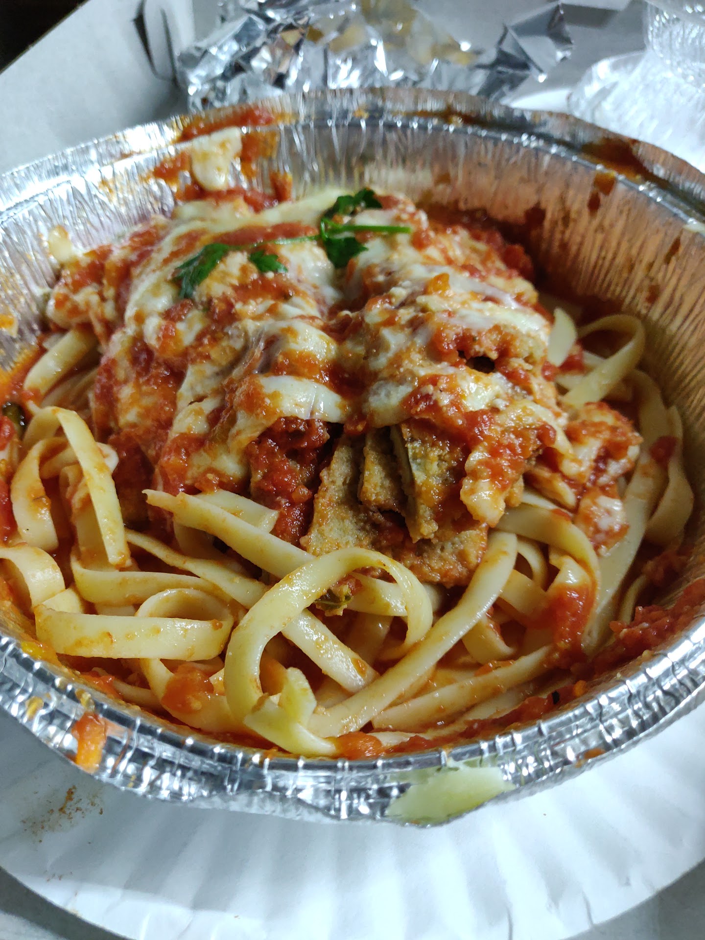 Second time going for the same plate...that is penne a la vodka with shrimps for me and for my daughters penne a la vodka with grilled chicken. To take out..when home with the plates , pasta looked sticky., not saucy at all... the first time I had ordered these , we stayed at the shop, and ate it there..what a difference it made? Next time i would ordered to stay, just to make sre they are doing their best.. good service, they have many customers who seemed to be well known at the restaurant, my advice:...