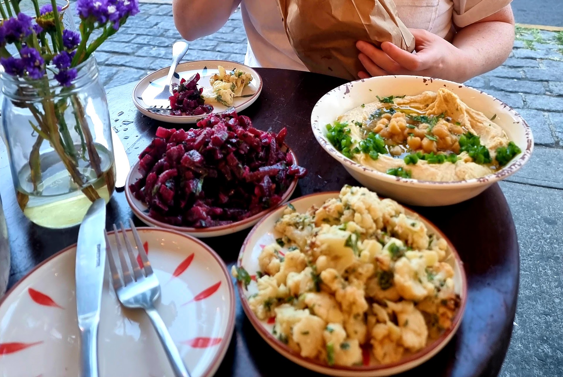 Read moreOkay, there is much deliberation about who's Hummus is the best. Well, I can say that Mimi's is regarded by many as of the Gold Standard in NYC. Last night I was down at Brighton Beach and decided I wanted hummus, so I called them to see if they had outdoor seating, which they currently do. But, what they didn't tell me was that they stop seating at a certain point, which is before they close their counter service. So by the time I got there, they were closed. I was disappointed. Why didn't the guy on the phone mention this when I called? Oh well, the waitress told me the news when I got there. She mentioned coming again, and I told her that I don't live nearby, and then I left. Not a minute later as I made my way down the street she appeared with a brown paper bag of items in hand, a focaccia bread and two spreads, and handed it to me. WHAT?? She told me that she was sorry that I'd come so far, and that there is a good restaurant about a block in the direction I was walking that is still open. What venue does this??? I am blown away, not by free food (which is really nice) but by the sincere gesture. And it comes through just as well in their food. If you want some of the best hummus in NYC, or other an array of delicious treats or a meal, make the trip to Mimi's, they do care about you!!! But still, ask what time their table...