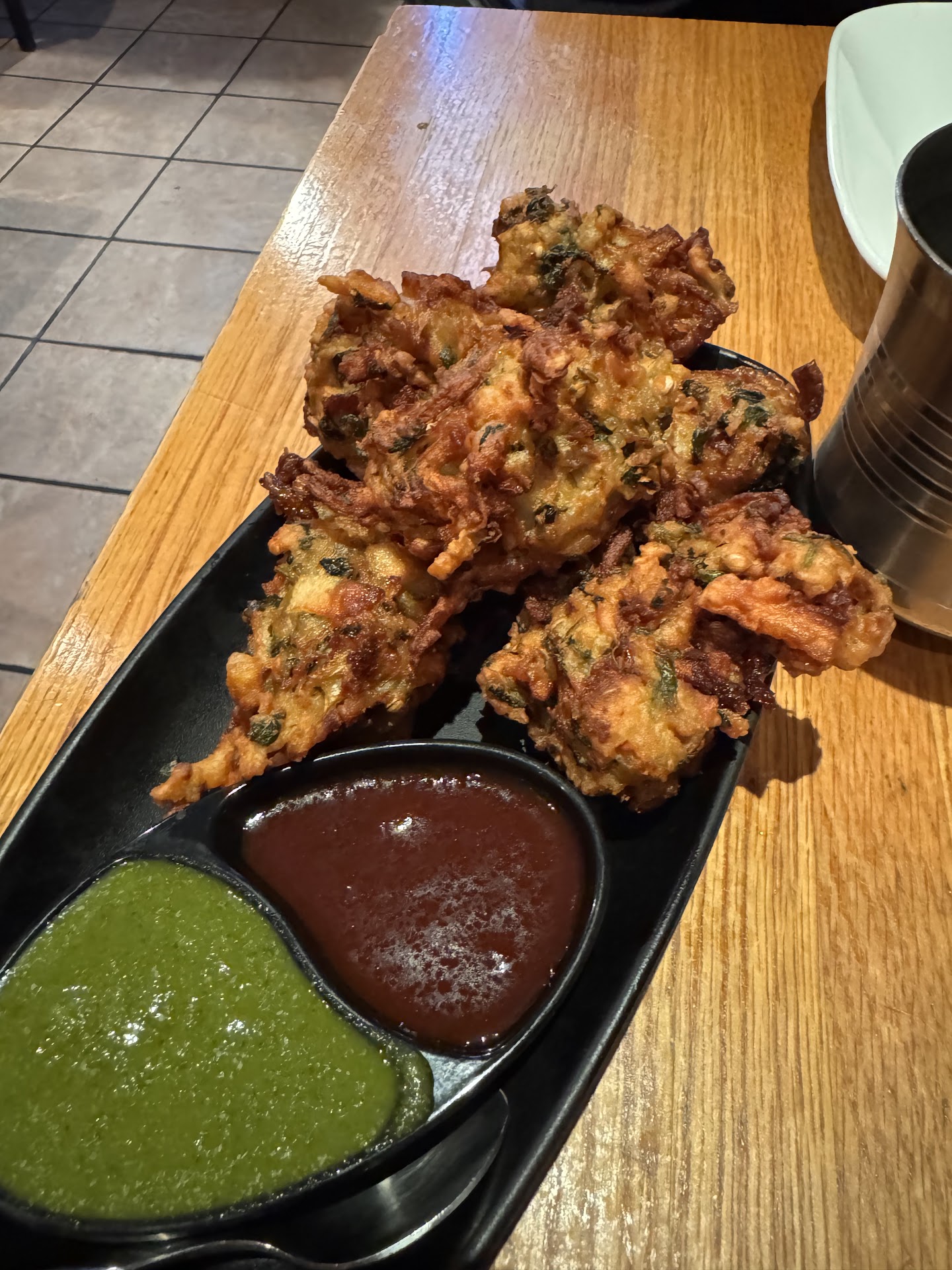 In a group of 3 we shared: chicken 65, a tandoori platter, and a chicken biryani. The chicken 65 was an appetizer that had a fair amount of chicken that was sweet with hints of spices. Tasty. The platter came with a combination of 3 pieces of chicken, lamb, minced lamb, and minced chicken. It also came with a side of naan, dal, and jasmine rice. The minced meats were really underwhelming as it tasted as I was eating salty sausages which isn’t ideal for dinner time. The pieces of lamb were tough and lacked flavor. The pieces of chicken were the only heroes of the platter as they were somewhat juicy and really flavorful. As for the sides the jasmine rice looked really underwhelming and the dal lacked flavor, meanwhile the naan was tasty enough it worked with the dal (nothing special). The rice in the biryani was nicely cooked/ toasted so it was both flavorful and satisfying to eat. I didn’t touch the chicken in the biryani as it was a lot of food. The mango lassi was again nothing special but still satisfying with its yogurty sweetness with hints of sour.