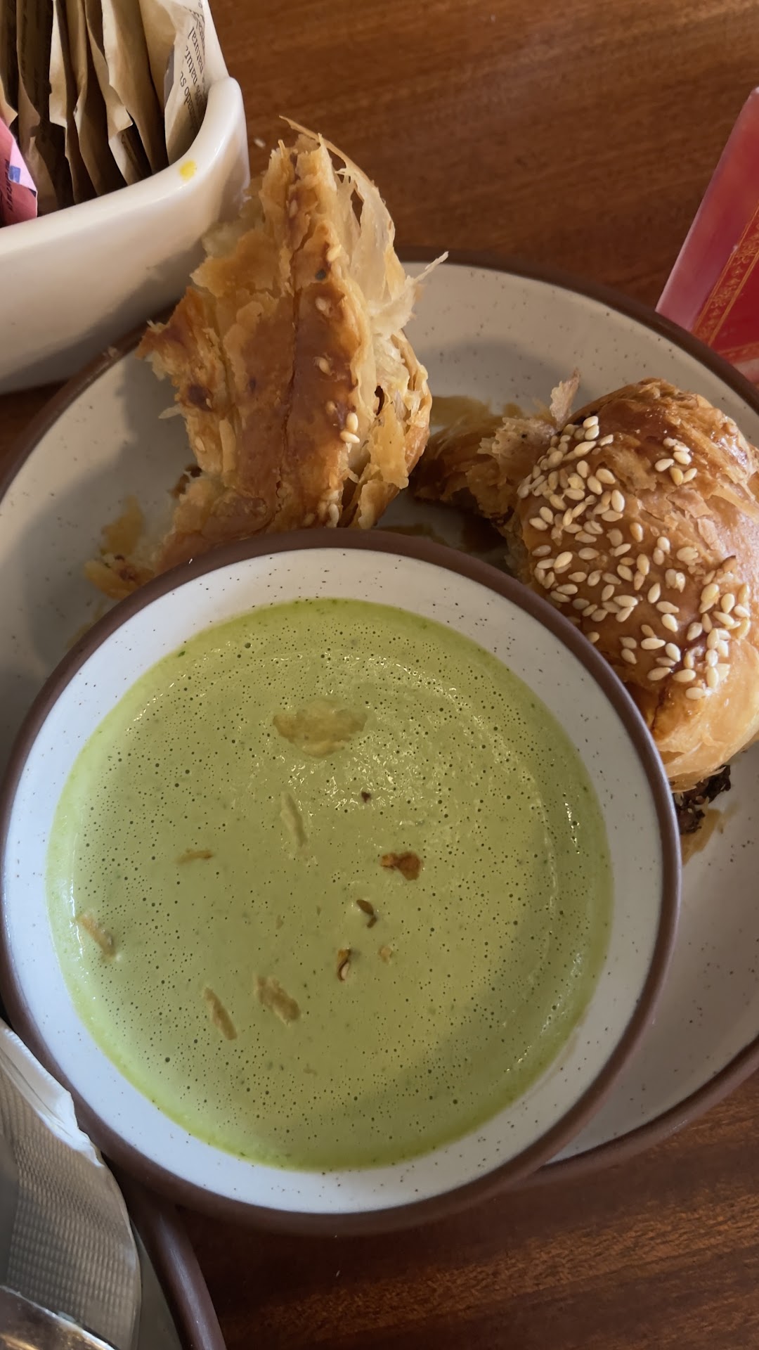 Recommended by a family member and looked really good on Google and once we arrived. Brunch on New Years Eve, not extremely busy and we sat at the bar. Ordered cappuccino which was pretty good. No complaints. Ordered breakfast, eventually. Green shakshuka and Israeli breakfast, with a side of burekas. Food took very long to come out which did make me a little worried, but I did get a baked dish, so no problem. Dishes finally arrived, pita and labne are great, but here the problems start. The green shakshuka was burnt to a crisp. It was black on top, the egg whites like a frittata, and the yolks unrecognizable deep below. Most of the sauce had evaporated leaving a weird green pepper salsa. I was hoping for a unique smokey spicy flavor but it was mostly inedible. Israeli breakfast was better, but then again it's hard to mess up eggs. Potatoes were burnt to a black crisp on one side. The side of burekas was perhaps the most disappointing, when I bit into it I wondered for so long what they're filled with. They fold them so tightly as to almost fool the guest into thinking there's a filling. We couldn't even finish one. Moreover, during our entire meal, no one came to check on us, even though it seemed like there was a manager walking the dining room. Such a shame, very disappointed after being recommend and seeing all the spectacular reviews.