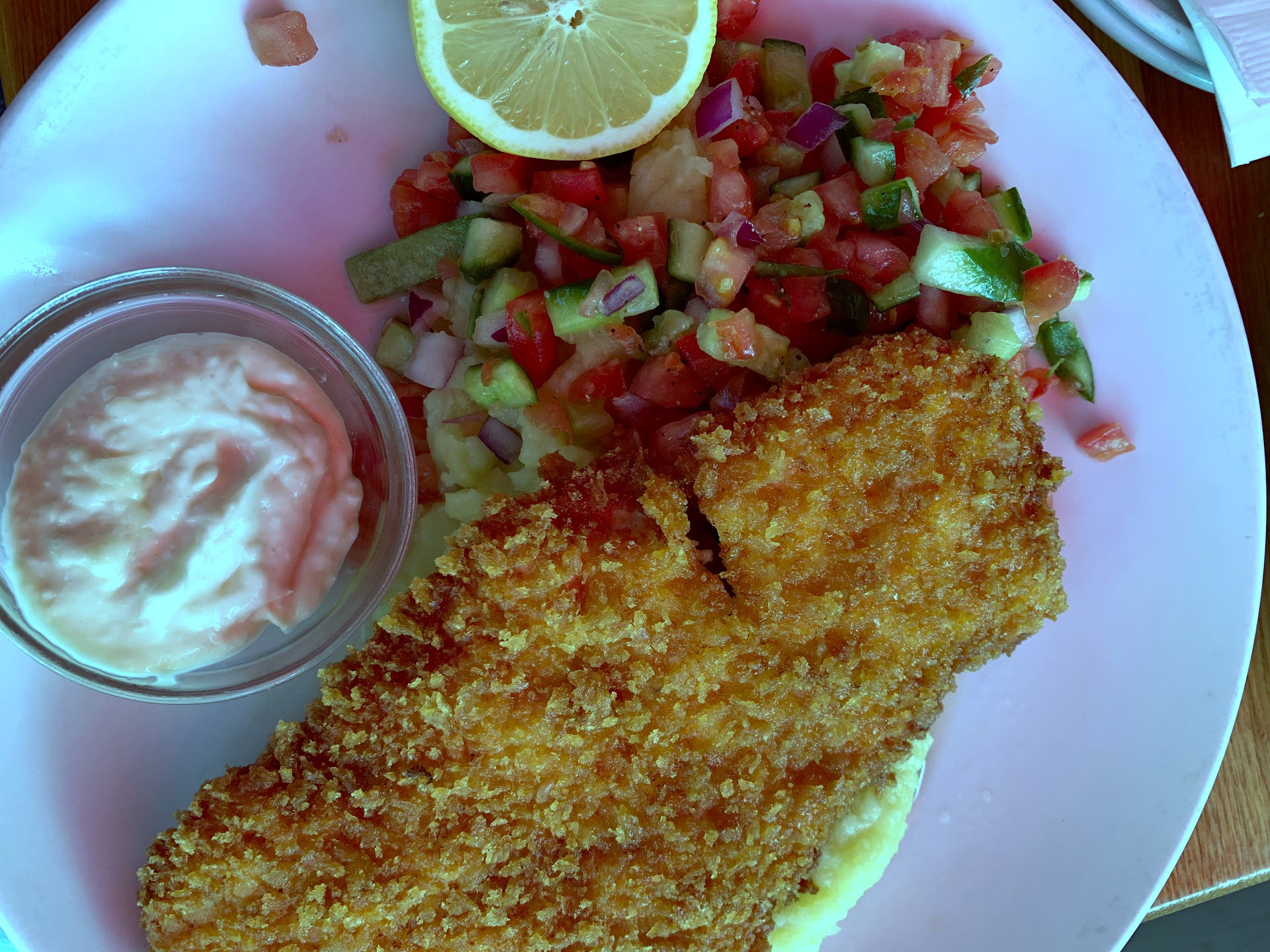 Read moreI have been waiting patiently to go to Miriam for quite some time now and today my wish list got a check mark. Let’s talk about this amazing mouth watering food first and then I’ll touch on safety precautions. We got our food at the very tail end of lunch time and I’m so glad because this was a filling portion and I’m told the chicken is double for dinner. This schnitzel was so juicy and expertly prepared, not too greasy from the frying but so delightfully crispy. It was just right! The mashed potato was creamy and magically kept the chicken warm with every bite. This traditional Israeli salad transported me right back to Tel Aviv. The salad brightened the dish with flavor and of course vibrant color. I saved talking about that aioli for last because Shanah Tovah to me! The horseradish compliments the schnitzel magically and is such a lovely homage the culture and history. I would recommend this dish to anyone who is ready for a hearty lunch.