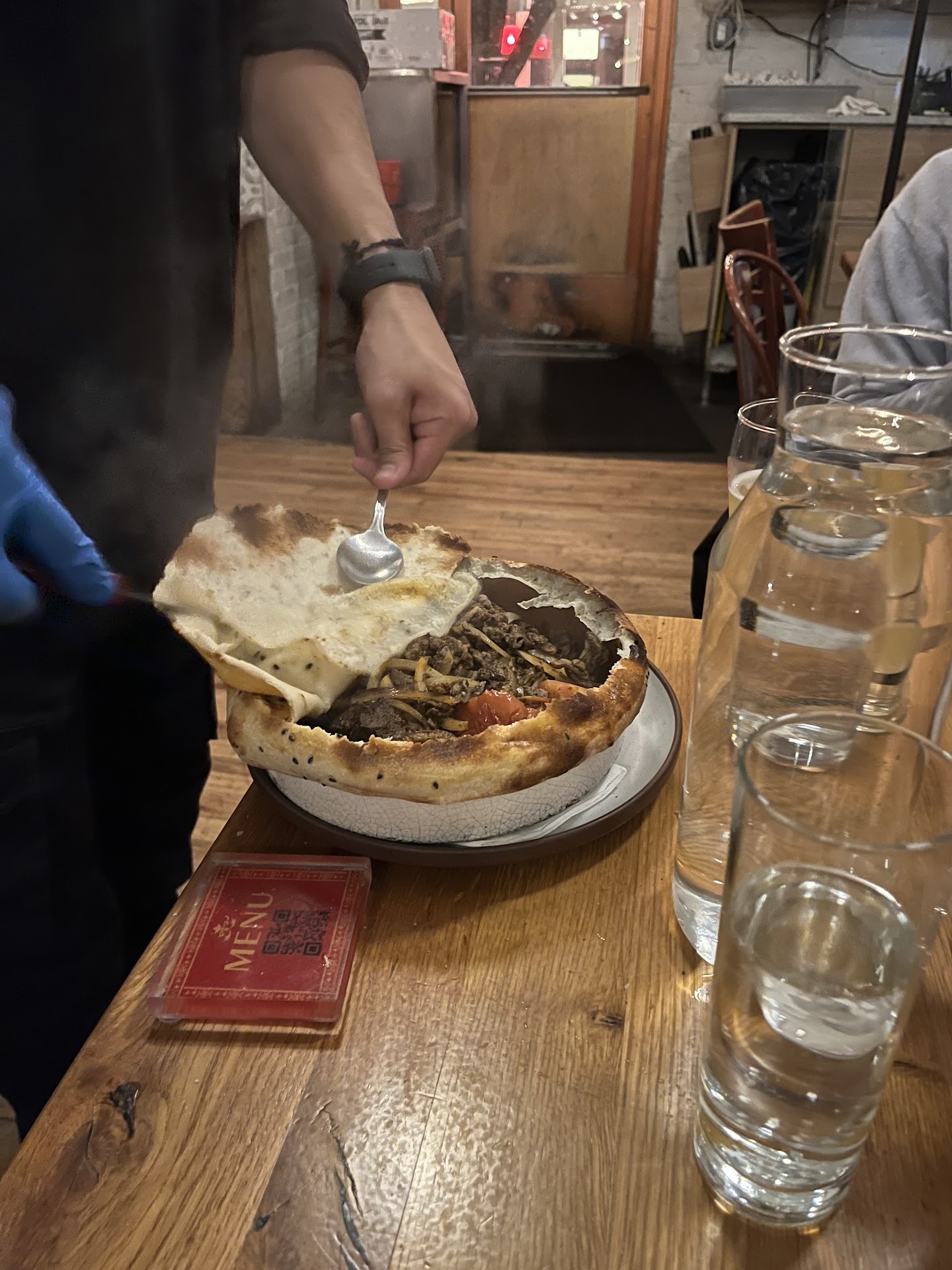 Recommended by a family member and looked really good on Google and once we arrived. Brunch on New Years Eve, not extremely busy and we sat at the bar. Ordered cappuccino which was pretty good. No complaints. Ordered breakfast, eventually. Green shakshuka and Israeli breakfast, with a side of burekas. Food took very long to come out which did make me a little worried, but I did get a baked dish, so no problem. Dishes finally arrived, pita and labne are great, but here the problems start. The green shakshuka was burnt to a crisp. It was black on top, the egg whites like a frittata, and the yolks unrecognizable deep below. Most of the sauce had evaporated leaving a weird green pepper salsa. I was hoping for a unique smokey spicy flavor but it was mostly inedible. Israeli breakfast was better, but then again it's hard to mess up eggs. Potatoes were burnt to a black crisp on one side. The side of burekas was perhaps the most disappointing, when I bit into it I wondered for so long what they're filled with. They fold them so tightly as to almost fool the guest into thinking there's a filling. We couldn't even finish one. Moreover, during our entire meal, no one came to check on us, even though it seemed like there was a manager walking the dining room. Such a shame, very disappointed after being recommend and seeing all the spectacular reviews.