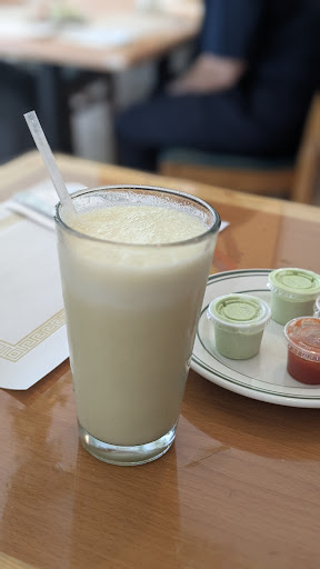 Once seated, our server was much more pleasant. The food came out quick & was not bad. The sancocho was great, but had no protein, so they provided a piece of rotisserie chicken. Which was probably hanging around house staff too long because it was way too salty. The dessert was a tres leches. The presentation was lovely, but it was frozen. This dish is pound cake that is soaked in the 3 milks. This was was a frozen cake served over sauce. Maybe they should try thawing before serving?
