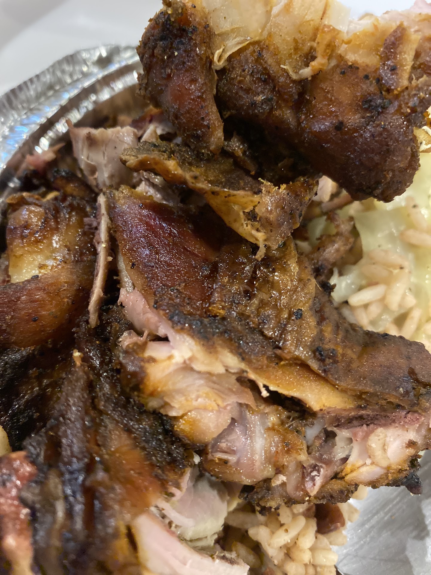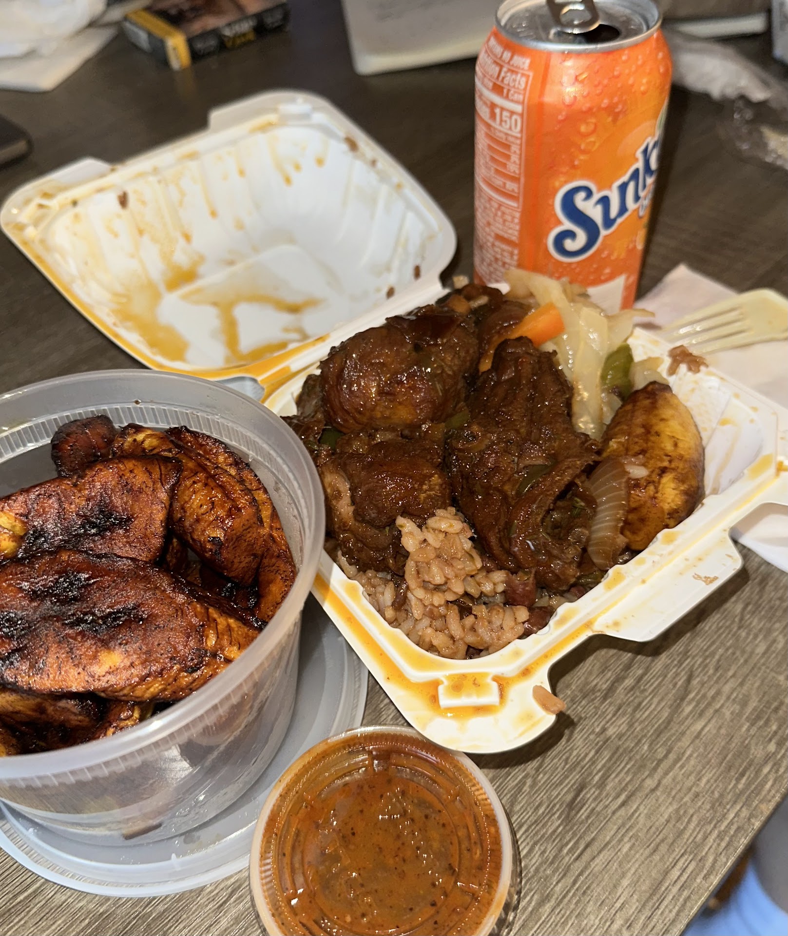 Oh this is definitely one of the "don't judge a book by its cover" place!!! The food was absolutely delicious, I had the small jersey chicken meal and let me tell you it was filling. Flavors just bursting in my mouth, wish I had found this place sooner, service was nice, different from what you're used to when you walk into a typical jamaican restaurant. Will definitely be coming back for more, if you're in the area, looking for some authentic jamaican cuisine, this is the place!!! Look past the door and entrance and just get you some of that...