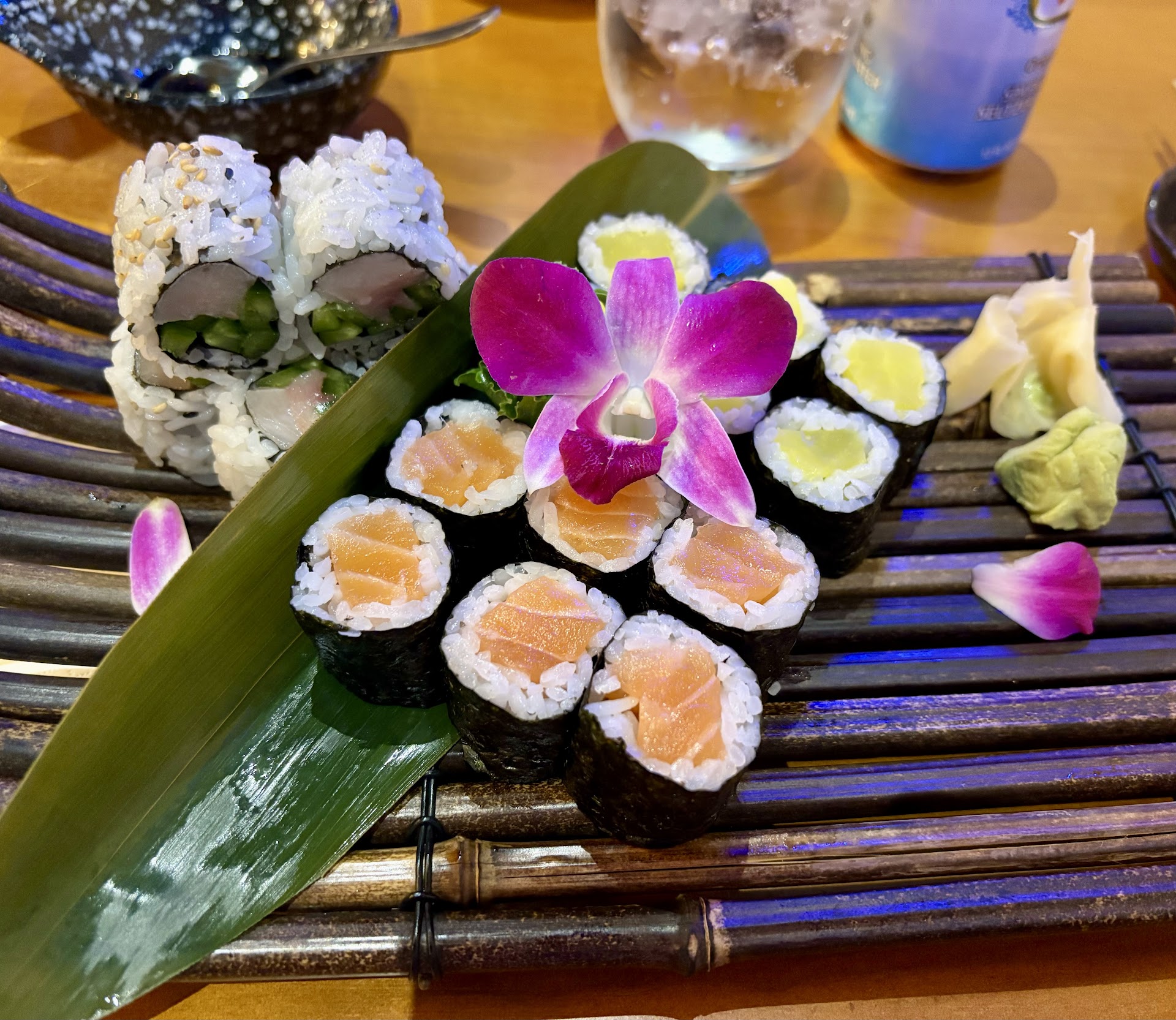 Read moreI love this place. Let me paint a picture for you: You enter. Youâre greeted by multiple smiling faces and guided toward a giant, cozy booth. You slide into the booth, the seats are smooth, the table is shiny and clean. The back of the seat rises high behind you and you are immersed in the cocoon of a suburban restaurant style booth that brings you back to memories of being 12 in 2004, giddy with excitement for a special dinner out with the family. Youâre presented with a giant book that looks too elegant and mysterious to be just a menu. You open it. It is not just a menuâŠit is a journey of colorful photographs, each one a world of sushi combo possibilities. Blue light glows from the walls. You make your selection: a maki combo with a side salad. A short time passes and thenâŠyour sushi arrives. Itâs presented to you on a small bamboo tray with an orchid posed delicately atop your salmon roll. You take a bite. The fish is fresh and bright. The orchid dances off to the side of the tray as you make your way through each piece of sushi. This is bliss.