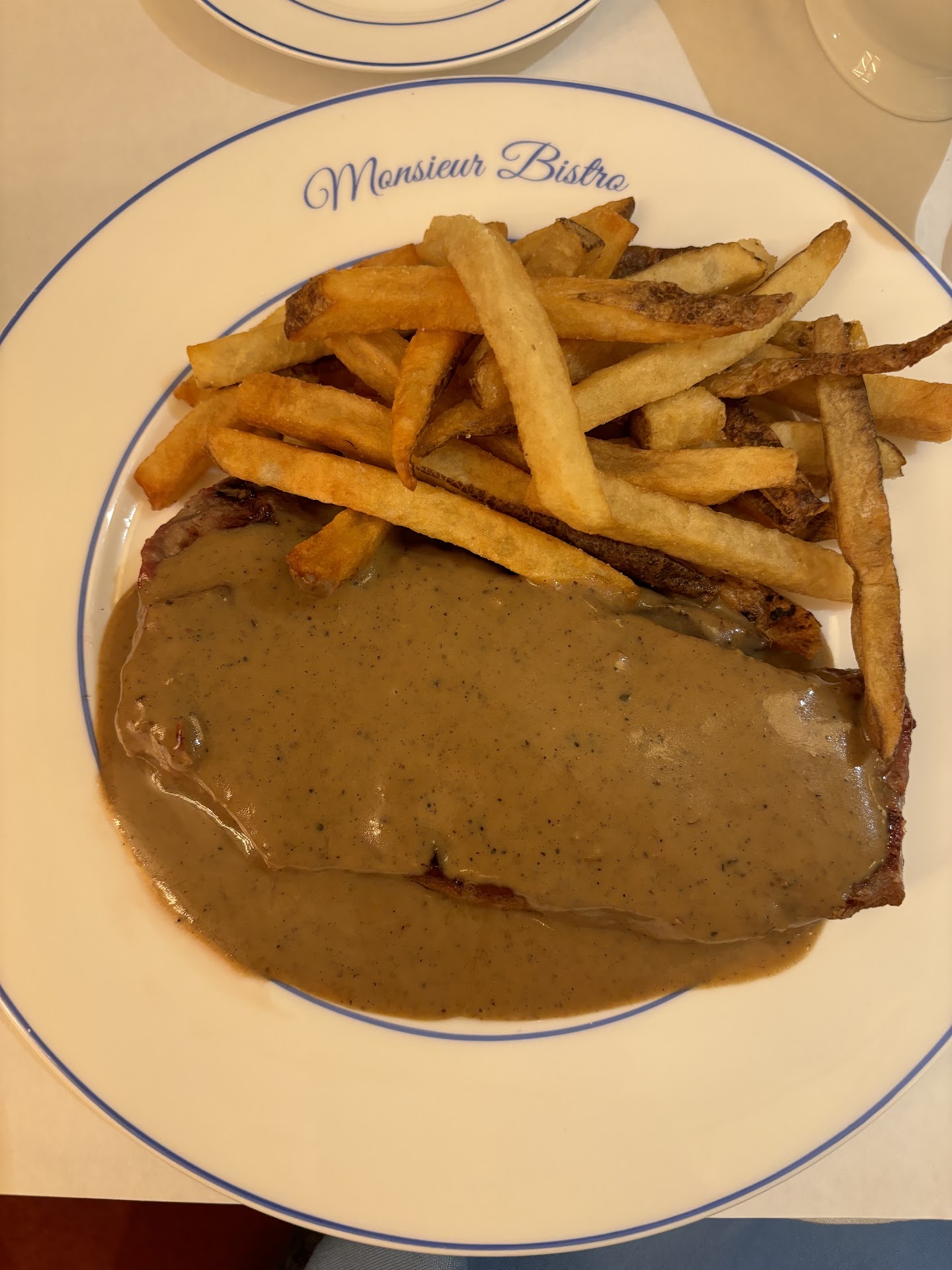 Read moreWe attended an art show at the Armory, found the Bistro on Google maps and luckily gave it a try. Wonderful all around experience! Shared the Escargot, oysters and Brussel Sprout Salad for appetizers which were all great starters. Two of us ordered the Steak Au Poivre, which was perfectly cooked medium rare, and the sauce was spot on. The Branzino was seared well and paired with a nice lemon, herb sauce. And the burger was ground prime steak, delicious. We all appreciated the service and the woman at the front of the house was extremely attentive and gracious. You could also tell she was running the show:) Will definitely back when in the area. Assuming this place will go viral soon so hopefully can...